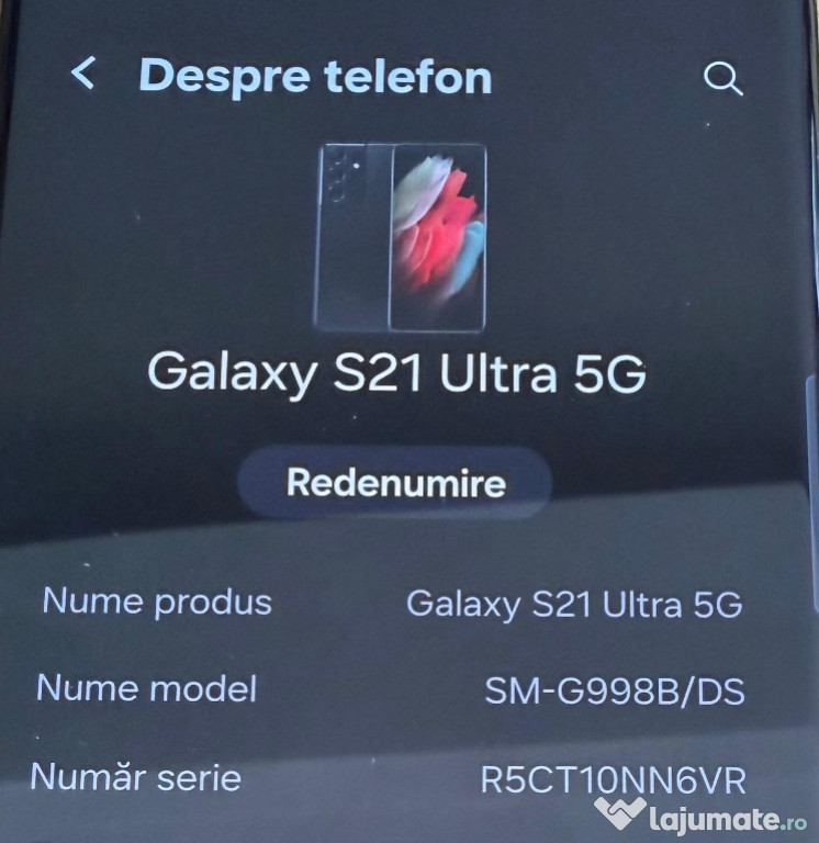 Samsung Galaxy S21 Ultra este un smartphone utilizat , in stare foarte buna ....ofer husa spate si cablu de incarcareAnuntul Samsung S21 Ultra este adaugat de pe LaJumate.ro.