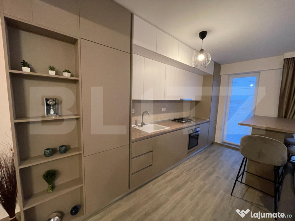 Dispune de finisaje premium, dar si de alte facilitati precum: incalzire in pardoseala ce ofera consum de energie termică mai mic ceea ce înseamnă și costuri mici; masina de spalat vase/rufe; TV in living; aer conditionat smart; cuptor electric; plita pe gaz; frigider.