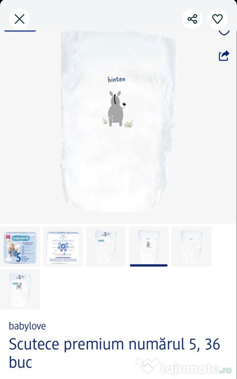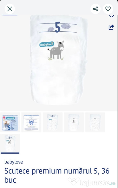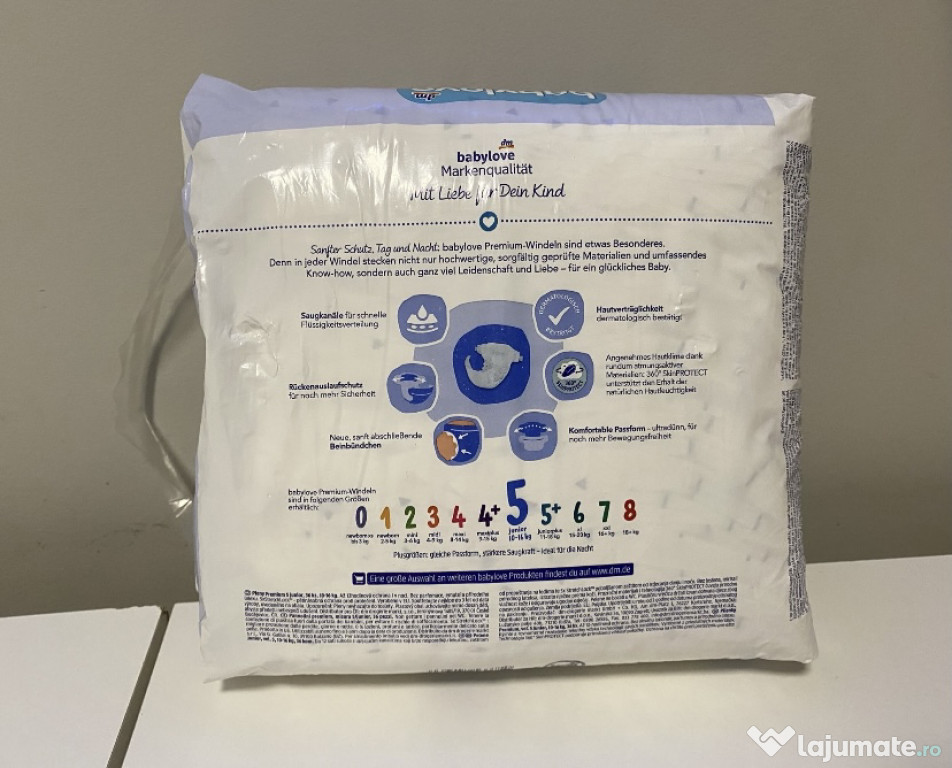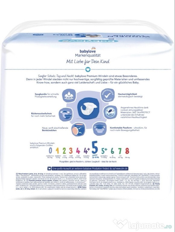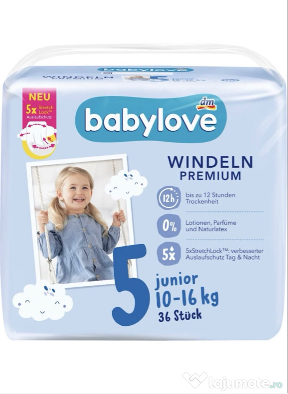 Anuntul Scutece babylove premium, numărul 5, 36 buc, 10 - 16 kg este adaugat de pe LaJumate.ro.