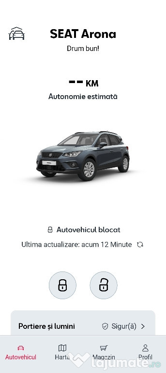 Arona 1.0 ,70 kW,an 2021,km 26.000, ITP valabil 2027,dotări-scaune încălzite electric,carlig demontabil original Seat,senzori parcare spate,deschidere/închidere auto din aplicația Seat,etc. .Mai multe detalii poze sau video cu auto pe whatsapp.Plata doar prin virament bancar,mașină înscrisă pe societate,prețul conține TVA deductibil.Fara variante schimbAnuntul Seat Arona 2021 km 26000 este adaugat de pe LaJumate.ro.