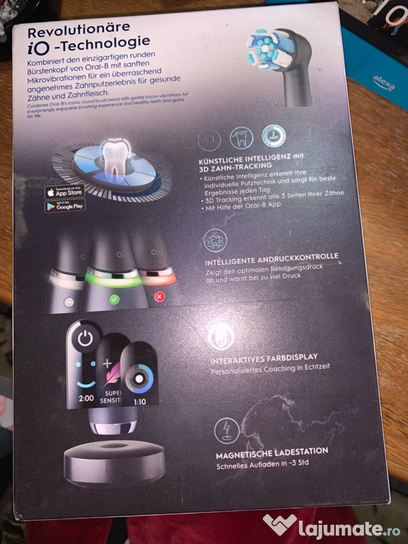 Setul conține două periuțe de dinți electrice Oral-B iO Series 9 Duo, în culorile Black Onyx și Rose Quartz.Tehnologie magnetică și micro-vibrații.