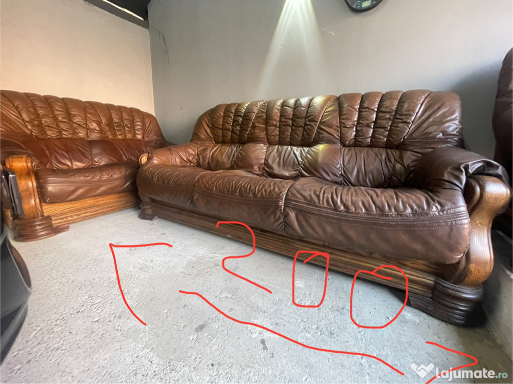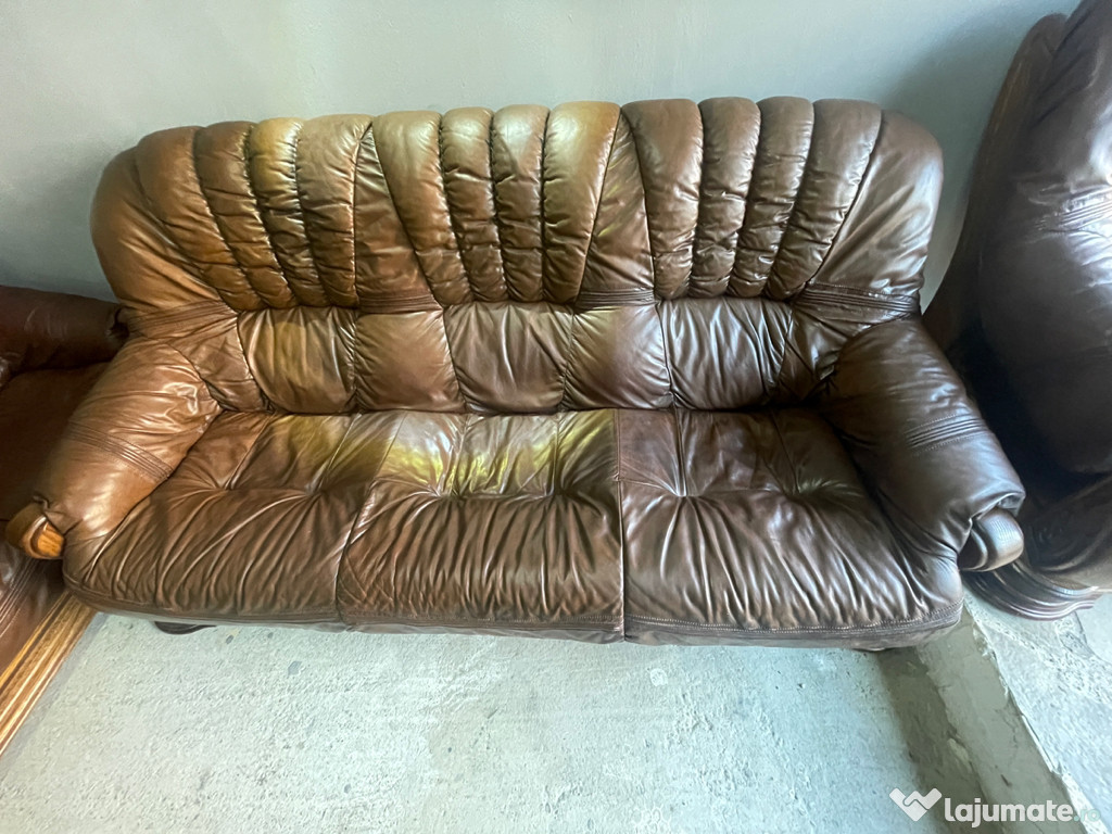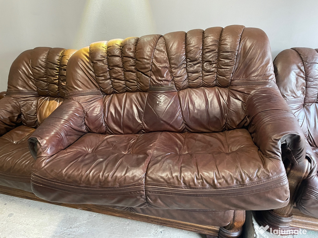 Set 3 canapele din piele și lemn masiv