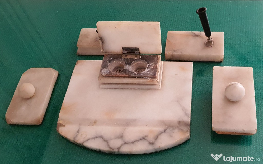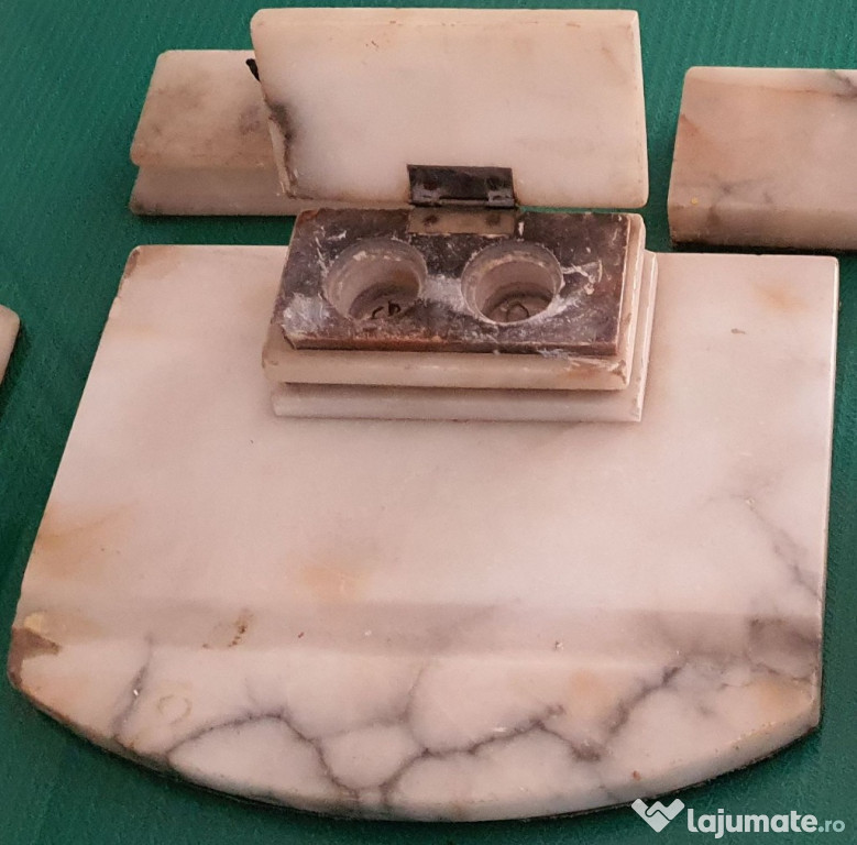 Set birou marmura, vintage contine 6 piese: - Piesa centrala, lungime – 28 cm, latime – 22 cm, grosim ...