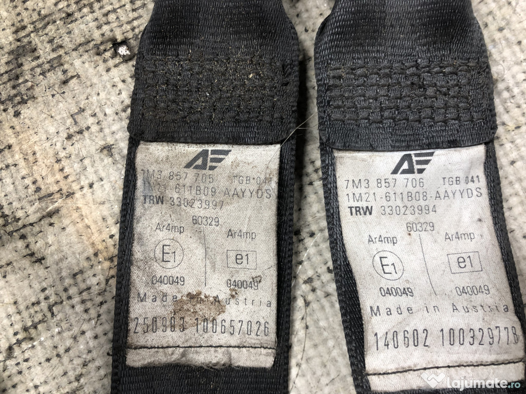 Set Centuri fata cu pretensioner Ford Galaxy 2001. Cod(uri): 7M3857706, 7M3857705. Piesele comercializate sunt originale, provenite din dezmembrari. Dispunem de o gama larga de piese multimarca. Piesele sunt verificate inainte de a fi puse spre vanzare. In caz de neconformitate piesa se poate returna. Va rugam sa verificati disponibilitatea pieselor telefonic. Trimitem in tara prin curier.Marcă: Ford