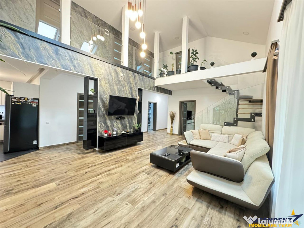 Living spatios tip loft, cu semineu modern si incalzire in pardoseala de ultima generatie;