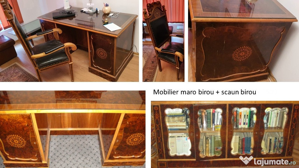Set mobilier maro, modele cu intarsie, stare foarte buna 1. Bufet dulap: lungime - 140 cm, latime - 4 ...