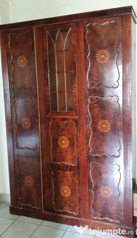 Set mobilier maro, modele cu intarsie, stare foarte buna1. Bufet dulap: lungime - 140 cm, latime - 44 cm, inaltime - 220 cm