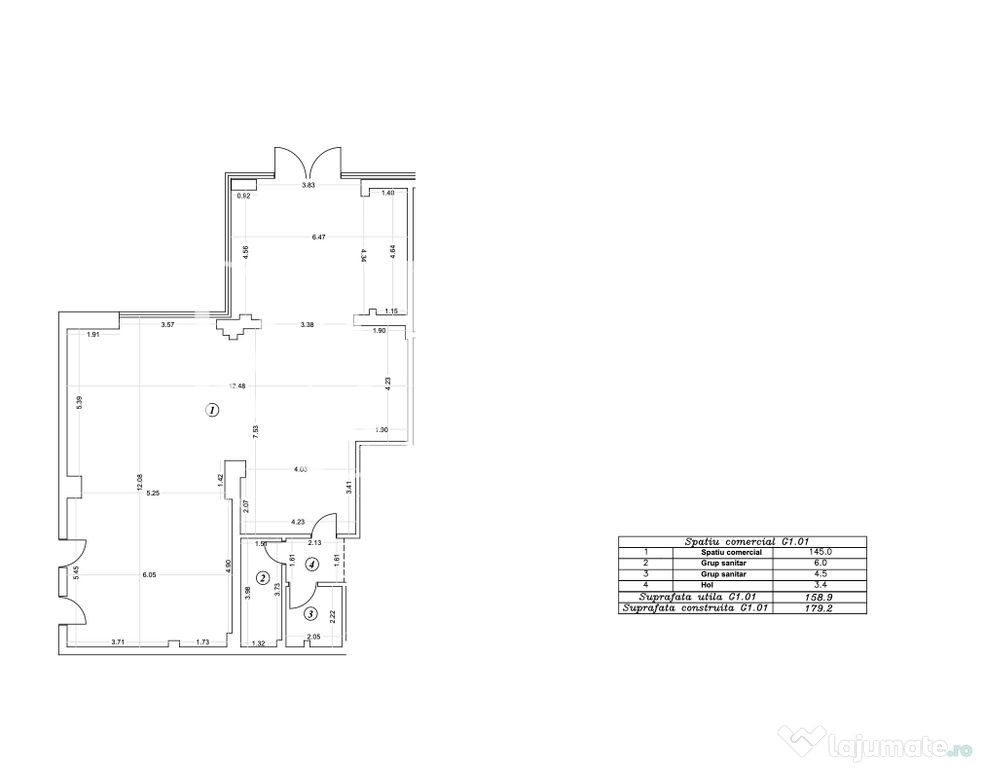 1. Spațiu comercial – 179 mp construiți (158,9 mp utili)