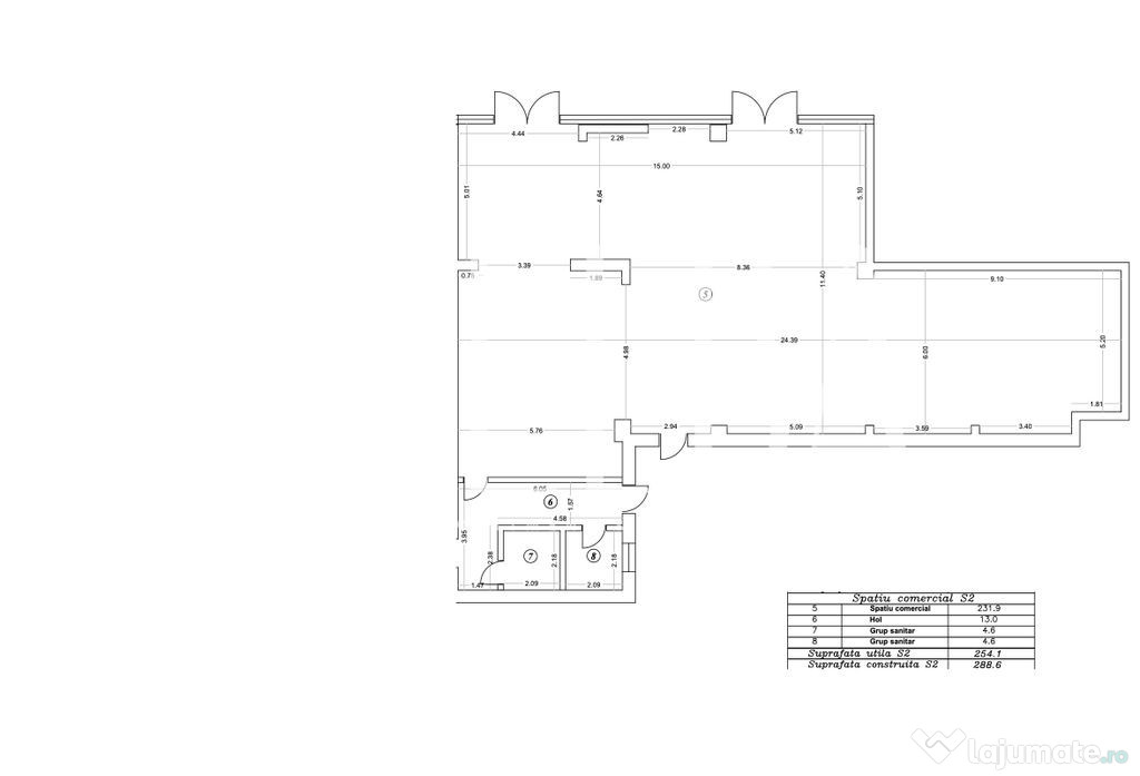 3. Spațiu comercial mare – 289 mp construiți (aprox. 245–250 mp utili)