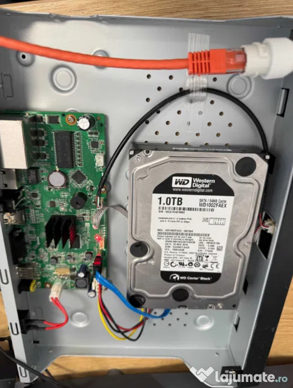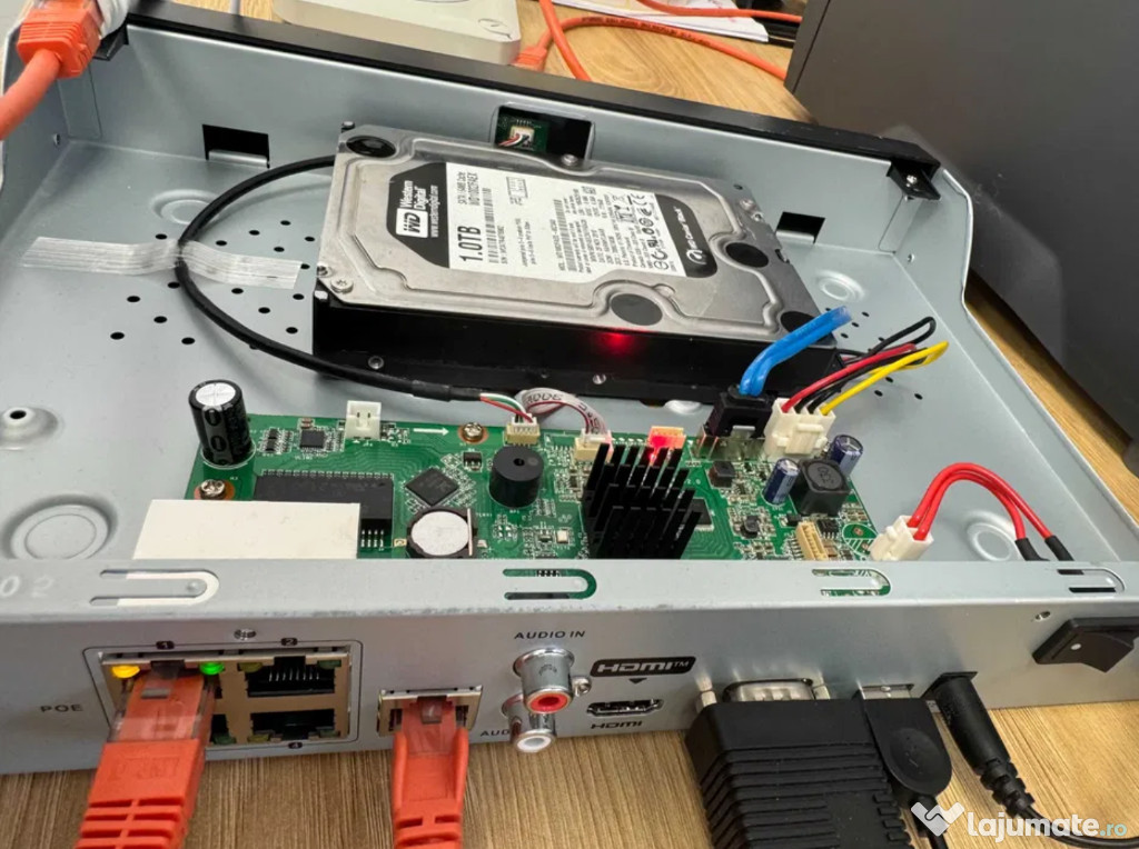 NVR permite alimentarea camerelor prin POE, prin cablul de retea, fara alimentare suplimentara de 12V. Include si alimentator 48V.