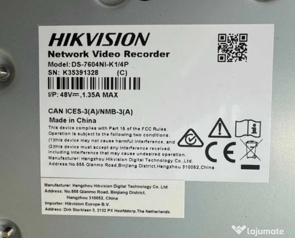 Dispozitiul de inregistrare digital: NVR 4 canale Hikvision DS-7604NI-K1/4P, 8MP - permite rezolutie 4K, 80Mbps, 4xPoE, HDMI 4k, ONVIF - pret nou - 750 lei