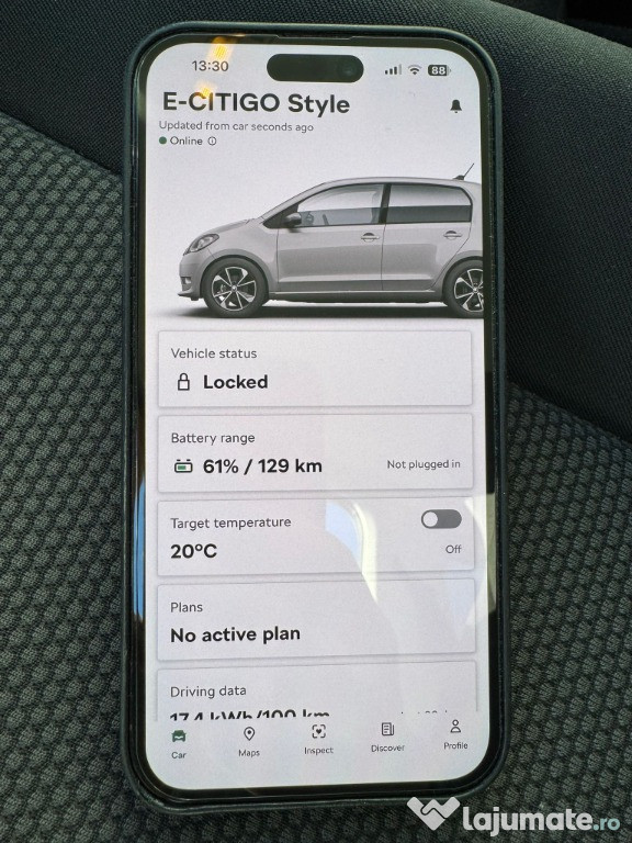 Skoda Citigo-e iV Style achiziționată nouă de la Porsche București Nord. Mașina a fost ținută permanent în garaj, utilizată cu grijă, are toate dotările opționale disponibile la momentul achiziției.Autonomie reală în funcție de sezon: