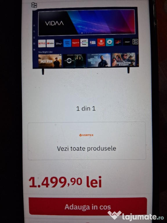 Vând smart TV Vortex 55 inchi,1,39cm stare foarte bună, cu wifi,internet ,vede f bine cumparata de la ...
