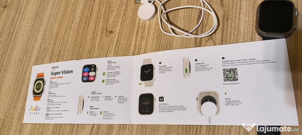 Ceas Smart Hello Ultra, 49 mm, carcasa metalica, folie sticla pe ecran + o folie sticla rezerva, diverse curele, carcasa specială de protecție, încărcătorul original, cutie, aplicație dedicata, perfect funcțional. Bateria tine peste 5 zile într-o utilizare normală, cu toate funcțiile de monitorizare tipice unui ceas smart. Prețul este de 200 lei fix, cu tot ce se vede in poze. Prefer predare personala dar trimit si in tara cu plata in avans.Anuntul Smartwatch Hello Ultra este adaugat de pe LaJumate.ro.