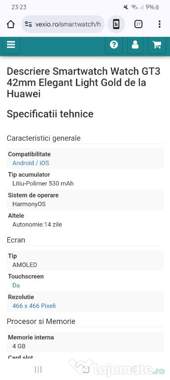 Anuntul Smartwatch Huawei Watch GT3 42mm Elegant Light Gold 986 din 1379 este adaugat de pe LaJumate.ro.