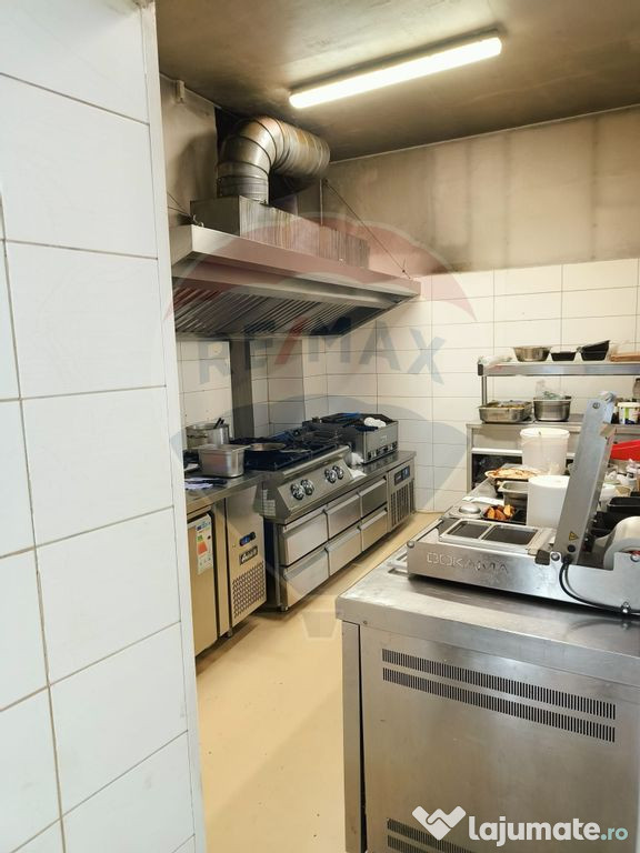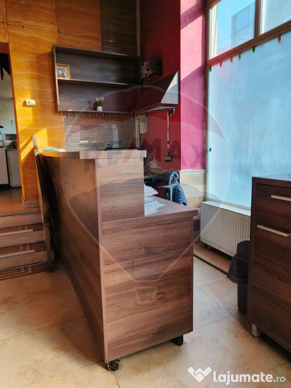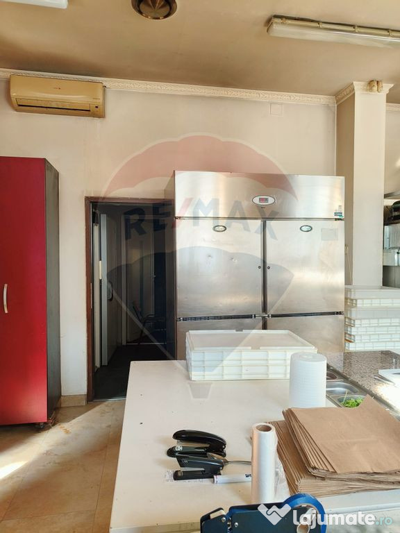 Spațiul dispune de zonă de servire, perfectă pentru restaurante, cofetării, brutării sau servicii de catering. Versatilitatea acestui imobil deschide posibilități multiple pentru orice afacere HoReCa ce își dorește expunere excelentă și acces rapid către clienții orașului.