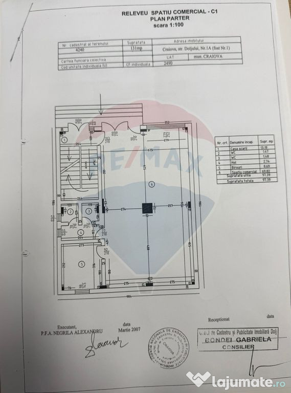 Re/max Vision Craiova va prezinta un spațiul comercial situat în cartierul Brazda lui Novac din municipiul Craiova, pe strada Doljului nr. 1A, într-o zonă bine cunoscută și ușor accesibilă, cu trafic pietonal și auto constant. Are o suprafață utilă de 97,39 mp și beneficiază de o compartimentare practică, care permite utilizarea eficientă a întregii suprafețe.Datorită poziționării și dimensiunii, spațiul este pretabil pentru o gamă variată de activități comerciale și de servicii, precum magazin de retail (îmbrăcăminte, încălțăminte, produse diverse), showroom, salon de înfrumusețare, cabinet (medical, stomatologic, psihologic), agenție de servicii, birouri, punct de lucru pentru firmă, farmacie, magazin alimentar de proximitate sau alte activități similare. Zona este una locuită intens, ceea ce oferă un potențial bun de clienți permanenți.