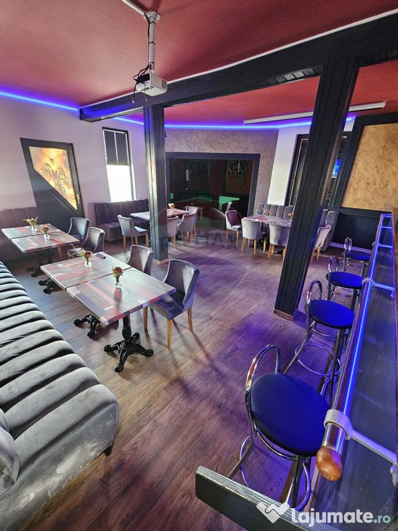 Afacere la cheie de închiriat – Bar / Spațiu multifuncțional – Dârlos, jud. SibiuSe oferă spre închiriere afacere la cheie – bar complet mobilat, situată în localitatea Dârlos, județul Sibiu, pe strada principală, cu vad stradal excelent și acces facil.