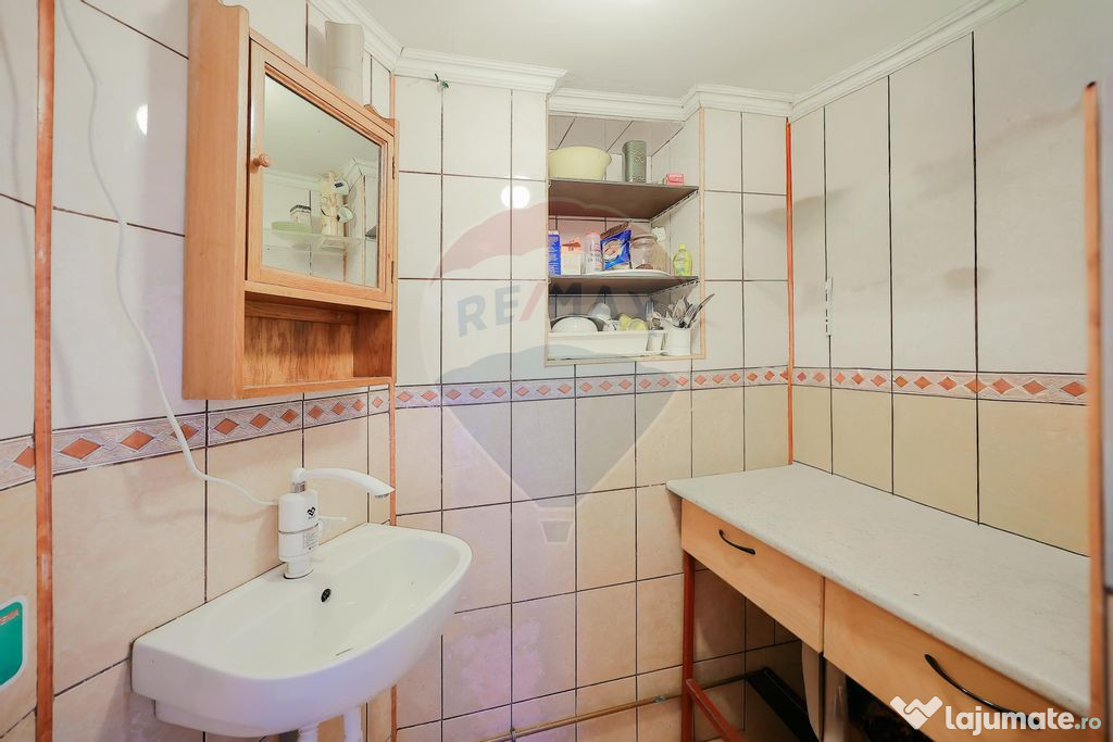 Deși este amplasat la demisol, spațiul beneficiază de lumină naturală plăcută, iar atmosfera este confortabilă datorită conductelor de căldură ce trec dedesubt și asigură o temperatură optimă pe tot parcursul anului. Există și două sobe pe lemne, iar gazul este tras până la poartă, oferind posibilitatea instalării unui sistem de încălzire pe gaz.