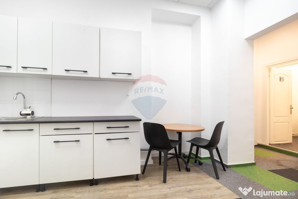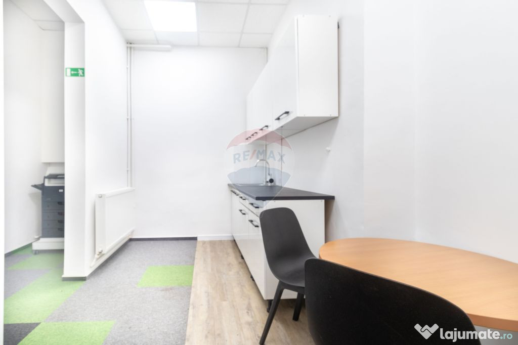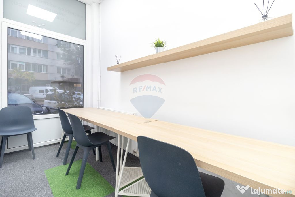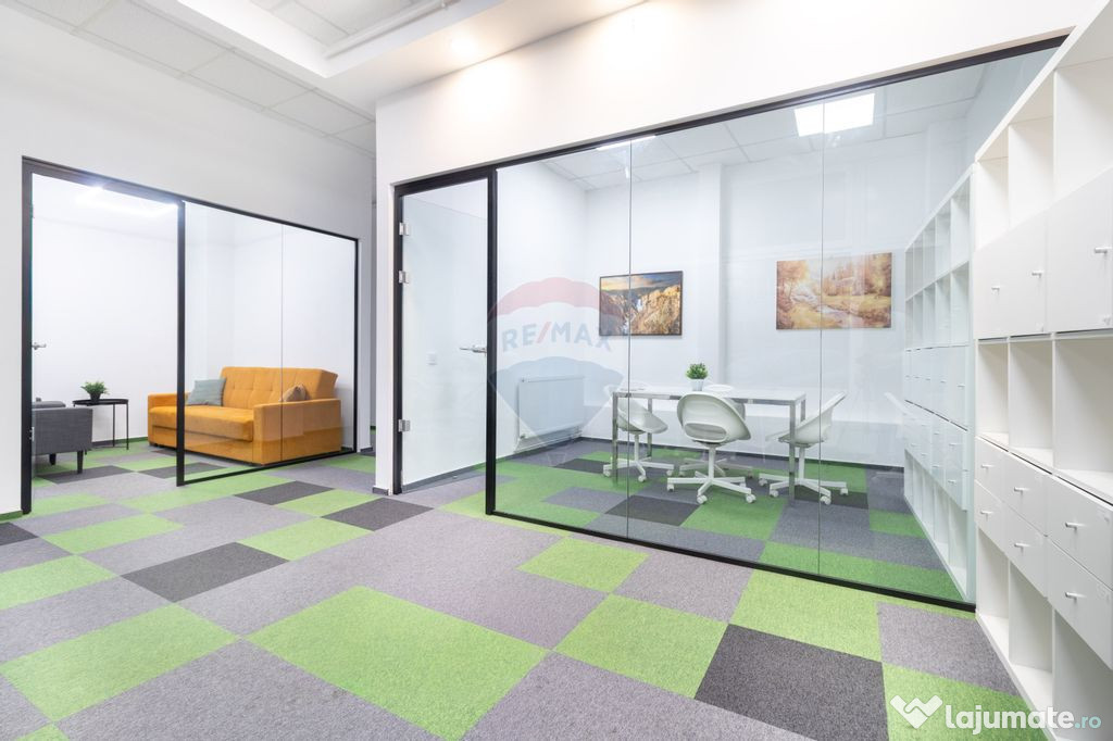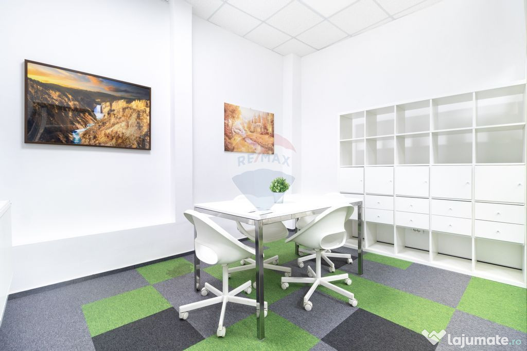 - Spațiu complet mobilat și utilat: birouri, scaune, iluminat, etc.