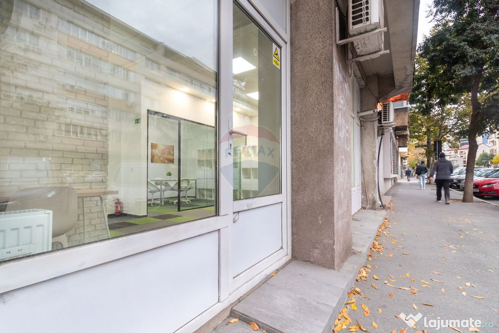Propunem spre închiriere un spațiu comercial pe Bdul. Gheorghe Duca, într-o zonă cu vad excelent, la doar câțiva pași de Gara de Nord, una dintre cele mai importante zone de tranzit și conectivitate din București. Situat la parterul unui imobil rezidențial, pe o stradă cu vizibilitate mare și acces facil, acest spațiu reprezintă o oportunitate ideală pentru businessuri ce își doresc să se dezvolte într-un pol urban activ și dinamic. Locația beneficiază de acces facil atât pentru clienți, cât și pentru angajați, fiind bine conectată la mijloacele de transport și zone de interes.Spațiul beneficiază de o suprafață utilă generoasă de 73 mp, fiind recent renovat (2022) cu materiale de calitate și finisaje premium. Datorită amenajării actuale, poate fi preluat și utilizat imediat, fără costuri suplimentare, sau poate fi reconfigurat în funcție de nevoile specifice ale chiriașului.