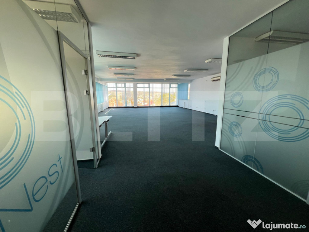 BLITZ vă propune spre închiriere un spațiu de birouri luminos și modern, situat la etajul 2 al unei clădiri de birouri contemporane, amplasată în zona Grădinii Botanice – una dintre cele mai apreciate zone pentru sedii de firmă.Spațiul are o suprafață utilă de 140 mp, compartimentată eficient pentru activități de birou: