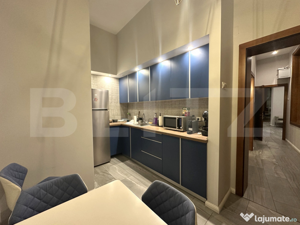 Blitz vă oferă spre vânzare un spațiu de birouri nemaipomenit rar întâlnit în piață. Aflat în minunatul palat Stern, acest apartament dichisit ca și un spațiu de birouri luxos, va oferă spațiu suficient pentru a vă derula activitatea afacerii dumneavoastră într-un stil elegant. Spațiul este compus din 5 încăperi separate, 3 bai, și o bucătărie utilată suficient pentru a gătii pentru întreaga echipă, desfășurându-se pe 178 mp utili. El se predă mobilat, exact așa cum se observă în fotografii. La pachet cu apartamentul veți primi bonus și un spațiu de depozitare de 9mp în demisol, și un loc de parcare în curtea palatului.Sper că v-am stârnit interesul suficient de mult, aștept cu nerăbdare telefonul dumneavoastră, și haideți să ieșim împreună la o vizionare!