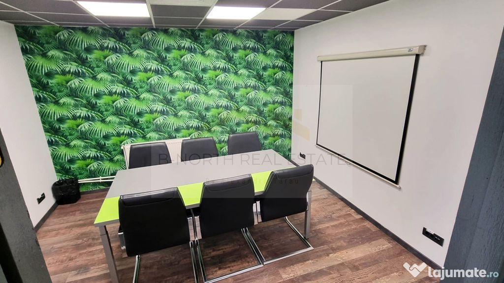 Compartimentare optimă: birouri individuale + un spațiu amplu 95.4 mp, ce poate funcționa ca sală de conferințe, training, meeting room sau sală pentru cursuri și activități pentru copii