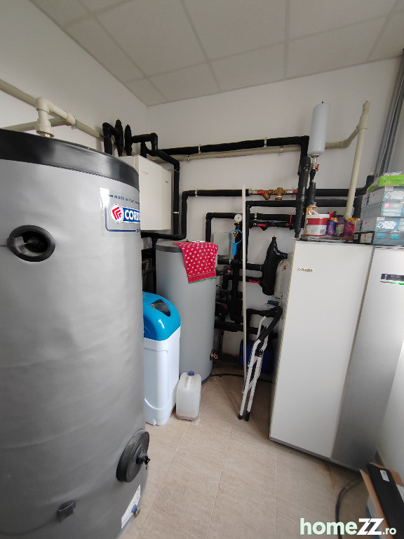 Incalzire si racire pasiva prin pardoseala cu pompa de caldura NIBE (suedia) si panouri fotovoltaice (costuri de intretinere foarte mici), mansarda izolata cu celuloza, tamplarie tripan, termosistem polistiren grafitat la exterior de 10 cm, semineu pe lemne functional.