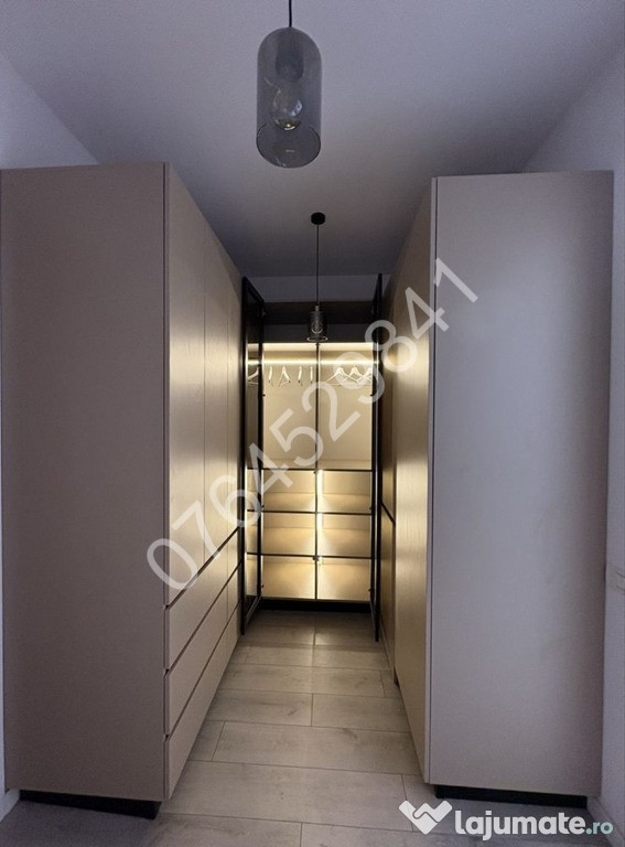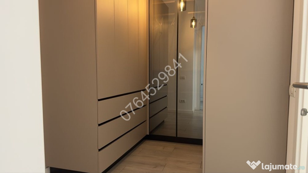 Balcon deschis tip terasa,centrala termica de bloc+incalzire in pardoseala+termostat ambiental,2 aparate de aer conditionat,2 televizoare smart,canapea in living,pat matrimonial+dressing generos in dormitor,dressing room pe hol,spatii depozitare,plita inductie+hota+cuptor electric+combina frigorifica incorporate, masina de spalat rufe,video interfon.