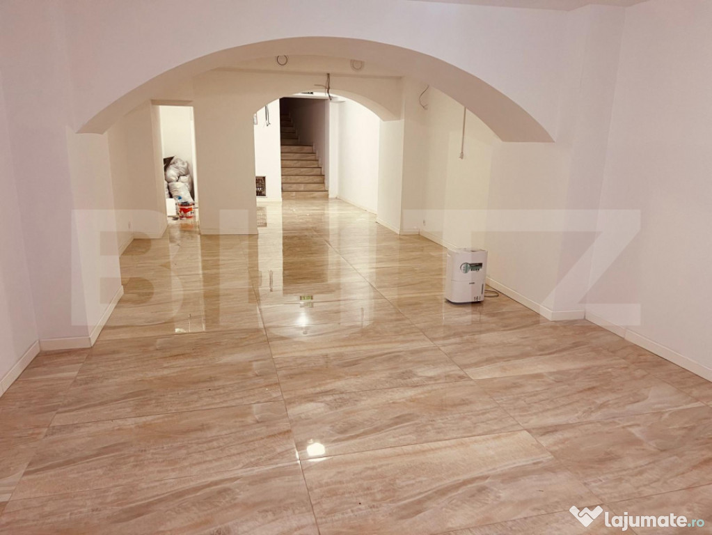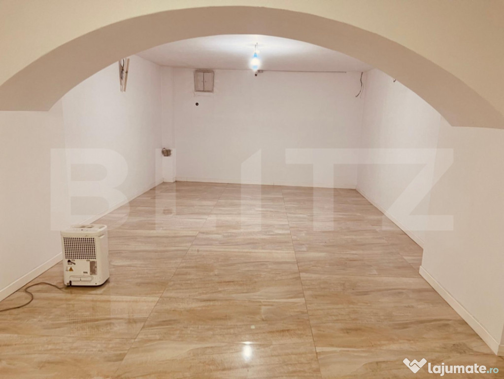 Blitz va oferă spre închiriere spațiu comercial situat în zona centrală a orașului Craiova, cu o suprafață totală de 240 mp, dispus pe demisol, parter, etaj 1 și mansardă.Spațiul poate fi închiriat integral sau parțial, doar pe nivelurile parter și etaj 1, în funcție de necesitățile chiriașului.