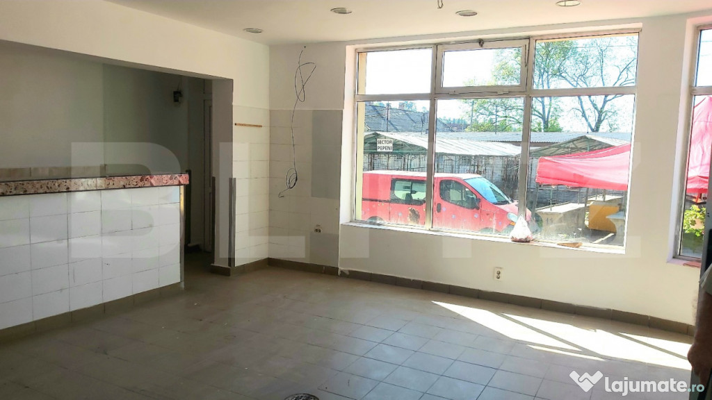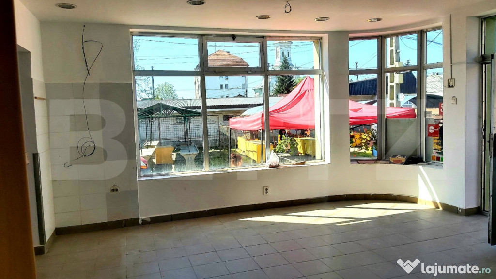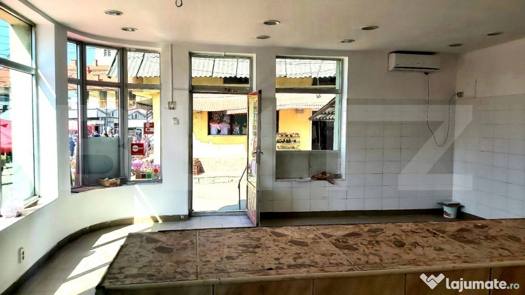 Poziționat strategic, acest spațiu comercial, atrage cu ușurință atenția trecătorilor și clienților potențiali. Se preteaza pentru multiple activitati; cafenea-bar, magazin de legume-fructe, activitati de prestari servicii.