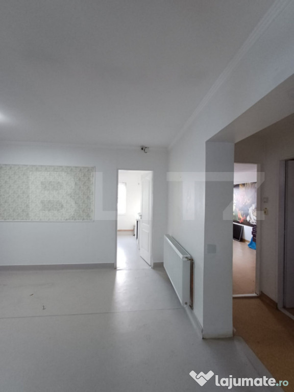 Blitz propune spre inchiriere un spatiu comercial/birouri renovat, in zona Micro III. Are o suprafata de 70 mp, fiind compus din 3 incaperi, 2 bai. Se preteaza pentru birouri, saloane de înfrumusețare sau diferite activități comerciale. Spațiul este situat in zona de trafic intens. Încălzirea se face prin centrala termica proprie. Va asteptam la vizionare!Cod ofertă / ID BLITZ: P161431
