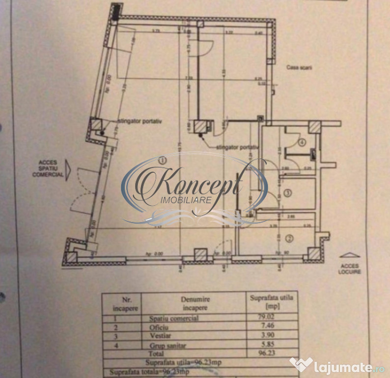Koncept Imobiliare ofera spre vanzare un spatiu comercial premium, amplasat in Zona Garii, la parterul unui bloc nou, intr-o locatie cu vad comercial excelent si accesibilitate rapida catre centrul orasului si zonele in dezvoltare, precum Parcul Feroviarilor si Rivus Mall. Pozitionarea il recomanda atat pentru utilizare directa, cat si pentru achizitie investitionala cu randament demonstrat. Suprafata utila de 96,23 mp este organizata eficient, in regim open space, cu o zona separata pentru birou si un grup sanitar. Inaltimea de 3 metri si vitrina ampla de 10 metri la strada principala confera vizibilitate maxima si posibilitati multiple de branding sau reclama luminoasa. Spatiul beneficiaza de doua intrari pietonale, acces auto si un loc de parcare subteran inclus in pret. Imobilul este finisat modern, dotat cu centrala termica proprie, iluminat natural generos si sistem complet de utilitati. Accesul secundar pentru marfa, prin curtea interioara, adauga un plus de functionalitate pentru activitati logistice sau comerciale. Exista posibilitatea recompartimentarii in doua spatii independente, fiecare cu intrare din strada, ceea ce poate aduce un randament de inchiriere de peste 7%. Pretabil pentru servicii, cabinete medicale, retail, farmacie sau birouri, acest spatiu ofera un echilibru excelent intre expunere, functionalitate si potential de crestere. Actele au fost verificate si validate de agentie. Pentru informatii complete, programarea unei vizionari sau pentru a afla oferta noastra completa va stam la dispozitie telefonic, prin e-mail sau la sediul agentiei noastre, pe str. Aviator Badescu, nr. 19, Cluj-Napoca.Id intern: P20891