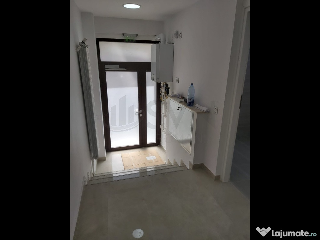 In plus, spatiul beneficiaza de un subsol cu lumina naturala si de un birou amenajat la mezanin (realizat din perete fals), suprafata totala fiind de aproximativ 150 mp. Toate utilitatile – electricitate, apa, gaze si caldura – sunt contorizate separat, independent de asociatia de proprietari.