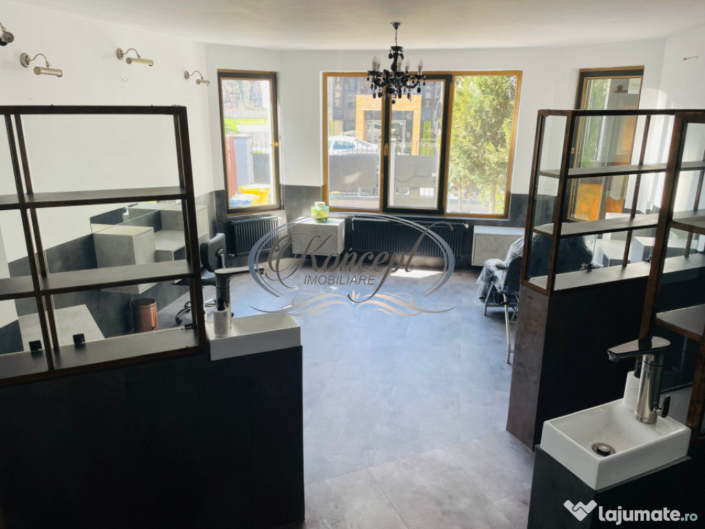 Koncept Imobiliare vă propune spre închiriere un spațiu comercial modern, situat în imediata apropiere a Cluj Arena, într-o zonă cu vizibilitate excelentă și acces facil. Spațiul are o suprafață utilă de 165 mp și este dispus pe două niveluri – parter și demisol, beneficiind de 3 intrări separate, ideale pentru activități mixte, acces diferențiat pentru clienți sau personal. Proprietatea este compartimentată în 5 camere, spațiu de recepție, zona de depozitare și 2 bai complet echipate, oferind o funcționalitate excelenta pentru diverse tipuri de activitați. Finisajele sunt moderne, spațiul este luminos și menține o atmosfera profesionista, potrivita pentru businessuri care pun accent pe imagine. Spatiul dispune de centrala termica proprie, posibilitate de montare firma luminoasa, iar în fața accesului principal sunt disponibile 3 locuri de parcare private, un avantaj important într-o zona atat de cautata. Pentru doritori, exista posibilitatea de preluare a spațiului împreuna cu salonul de tatuaje complet utilat și autorizat, gata de funcționare, reprezintand o oportunitate excelenta pentru cei care vor sa continue activitatea imediat. Datorita poziționarii, compartimentarii și dotarilor, spațiul este pretabil pentru: activitați comerciale, servicii, beauty, birouri, showroom, activități creative sau mixte. Disponibil din ianuarie 2026. Pentru informatii complete, programarea unei vizionari sau pentru a afla oferta noastra completa va stam la dispozitie telefonic, prin e-mail sau la sediul agentiei noastre, pe str. Aviator Badescu, nr. 19, Cluj-Napoca.Id intern: P17826
