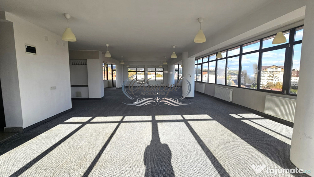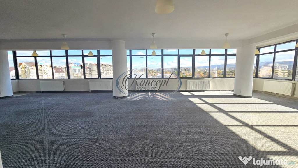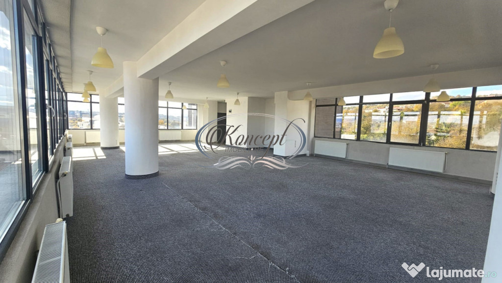 Koncept Imobiliare ofera spre inchiriere un spatiu de birou situat in cartierul Iris, in zona Ansamblului Rezidential Iris, intr-o cladire de birouri dispusa pe 6 niveluri. Pozitionat la etajul 5, spatiul beneficiaza de o panorama frumoasa asupra zonei si de acces facil atat pietonal, cat si auto, intr-o locatie cu infrastructura completa si vizibilitate buna. Spatiul are o suprafata utila de 100 mp, este open space si include un grup sanitar, o chicineta si un balcon de 7 mp. Interiorul are o inaltime de 2,7 m, oferind o senzatie placuta de volum si luminozitate. Exista posibilitati de recompartimentare in functie de necesitati, fapt ce confera flexibilitate in organizarea activitatilor de birou. Cladirea este moderna, cu acces securizat si lift pana in spatiu, dotata cu sisteme de incalzire prin centrala proprie si calorifere. Spatiul este finisat, nemobilat, cu iluminat natural si artificial foarte bun, adaptat activitatilor de birou. Panorama si aportul de lumina naturala contribuie la un mediu de lucru confortabil si eficient. Spatiul este potrivit pentru birouri de orice tip, firme de contabilitate, arhitectura, call center sau activitati cu sau fara public. Datorita amplasarii si configuratiei, se preteaza excelent pentru companii care doresc o prezenta profesionala intr-o cladire business. Spatiul este disponibil imediat, iar actele au fost verificate si validate de agentie. Pentru informatii complete, programarea unei vizionari sau pentru a afla oferta noastra completa va stam la dispozitie telefonic, prin e-mail sau la sediul agentiei noastre, pe str. Aviator Badescu, nr. 19, Cluj-Napoca.Id intern: P20880