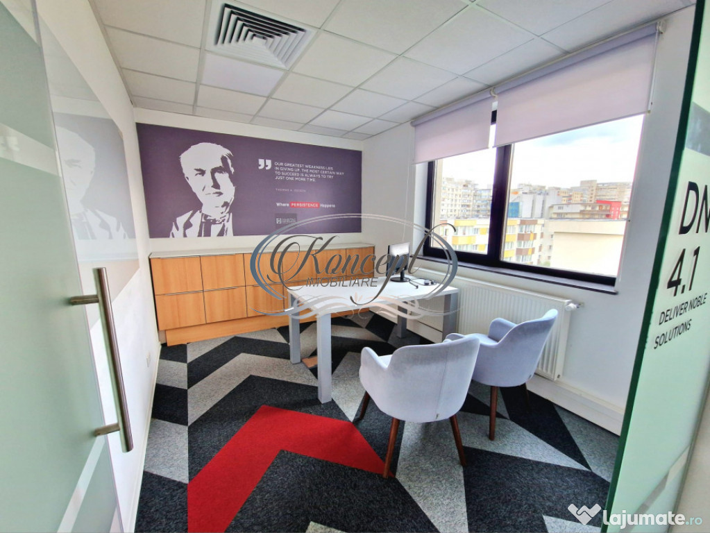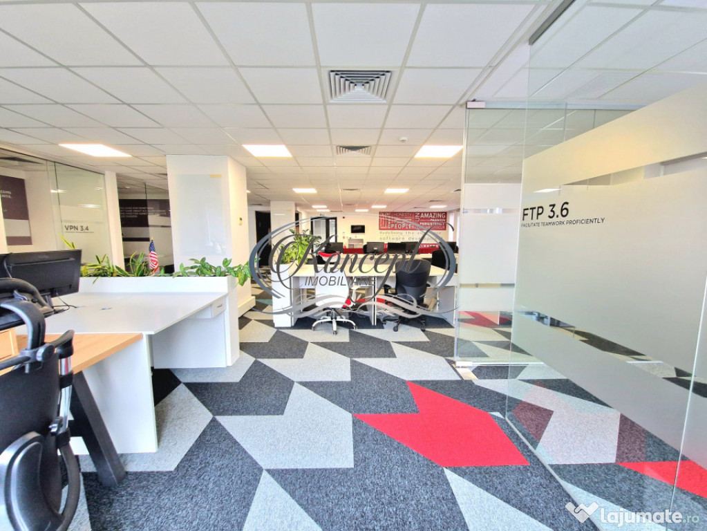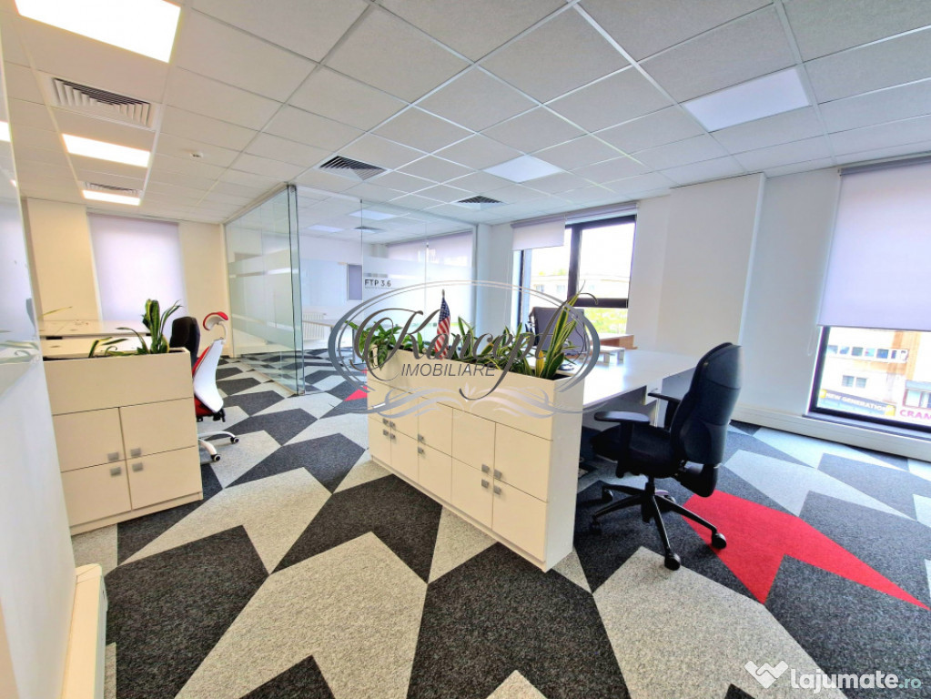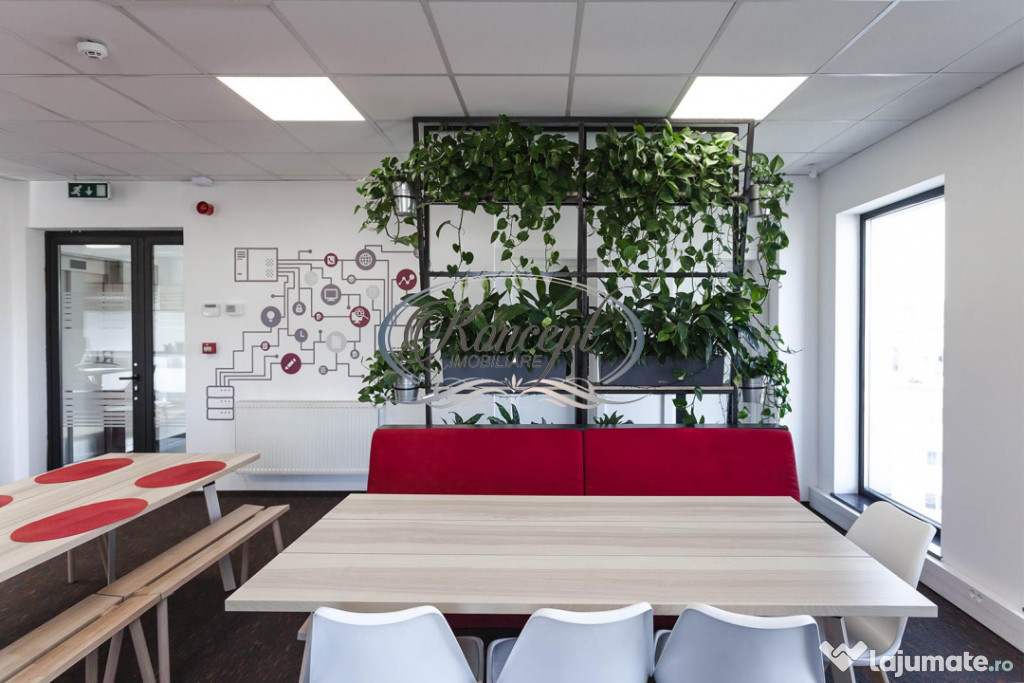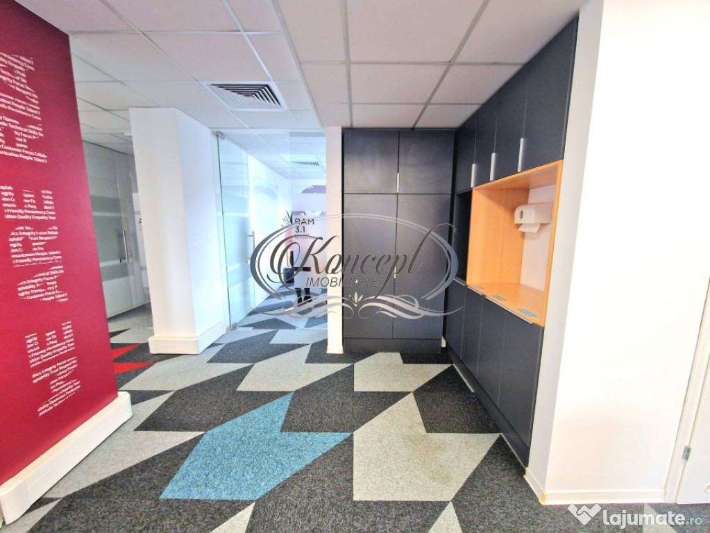 Koncept Imobiliare ofera spre inchiriere un spatiu de birouri situat in cartierul Marasti, pe strada Bucuresti, in imediata proximitate a zonei comerciale Kaufland. Amplasat la etajul 4 al unei cladiri moderne, cu acces pietonal si auto facil, imobilul beneficiaza de 6 locuri de parcare proprii – un avantaj important pentru companiile care apreciaza confortul operational si accesibilitatea urbana. Spatiul are o suprafata utila de 241 mp si este configurat in regim open-space, cu 4 incaperi partial compartimentate si 2 grupuri sanitare. Designul versatil permite recompartimentari in functie de nevoile chiriasului, oferind libertate in organizarea fluxului de lucru. Terasa de 8 mp adauga un plus de functionalitate si poate fi inchiriata separat. Finisajele moderne si dotarile complete transforma acest birou intr-un spatiu “la cheie”: mobilierul este inclus, sistemul de ventilatie permite reglarea temperaturii (aer cald / rece), iar inaltimea interioara de 2.9 m si aportul generos de lumina naturala asigura un ambient optim pentru activitati profesionale. Sistemele de alarma, supraveghere video si acces pe baza de cartela intaresc nivelul de siguranta si control. Ideal pentru firme din domeniile contabilitate, arhitectura, IT, consultanta sau alte servicii business, acest spatiu reprezinta un mix echilibrat intre functionalitate, confort si reprezentativitate. Disponibil imediat si cu documentatia juridica validata de agentie, este pregatit pentru ocupare. Pentru informatii complete, programarea unei vizionari sau pentru a afla oferta noastra completa va stam la dispozitie telefonic, prin e-mail sau la sediul agentiei noastre, pe str. Aviator Badescu, nr. 19, Cluj-Napoca.Id intern: P20866