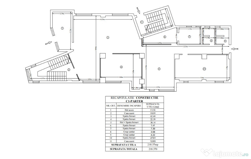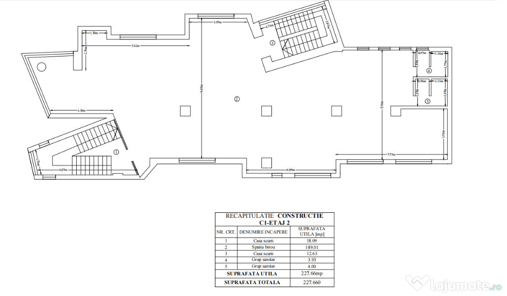 Cladirea este mai are disponibile parterul si etajul 1, ambele avand surafete de aprox. 220. Minimul de inchiriat este un etaj.