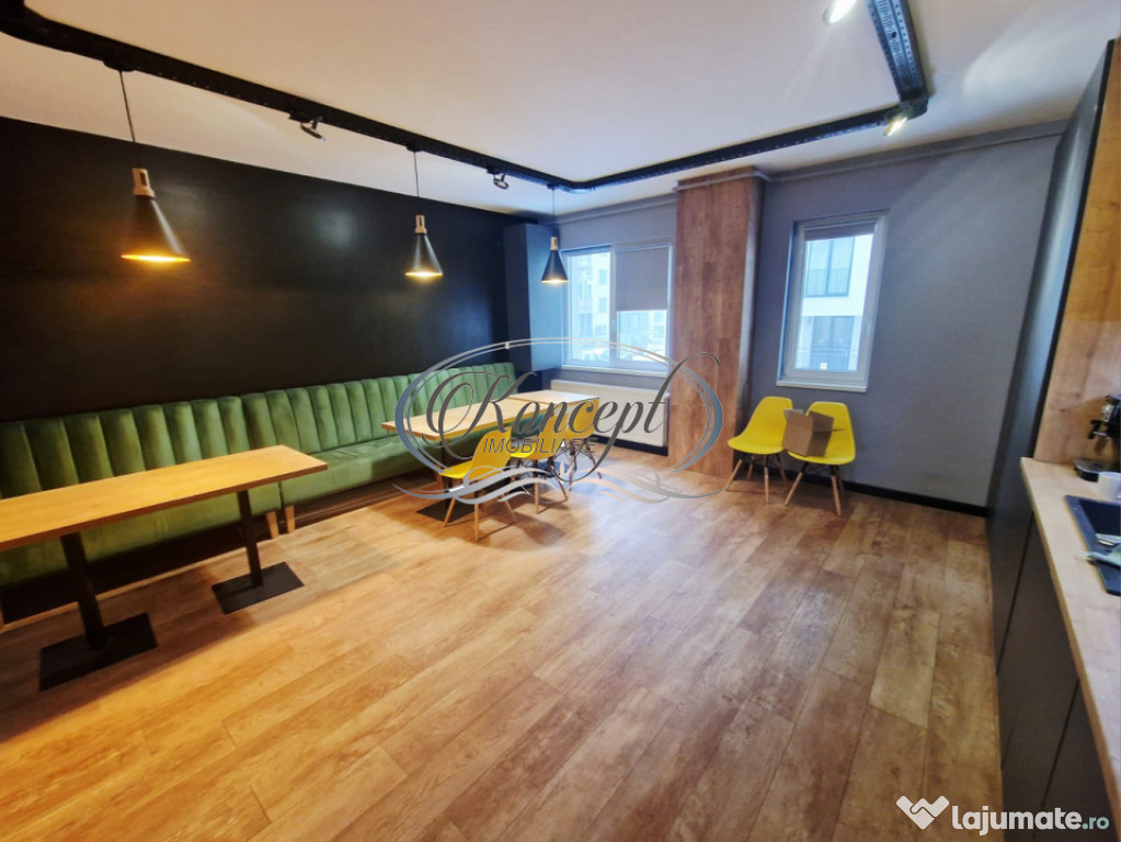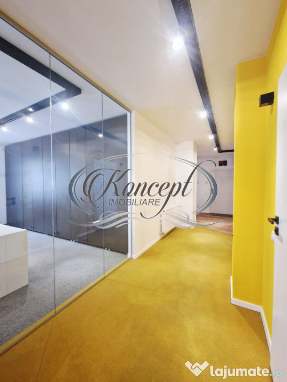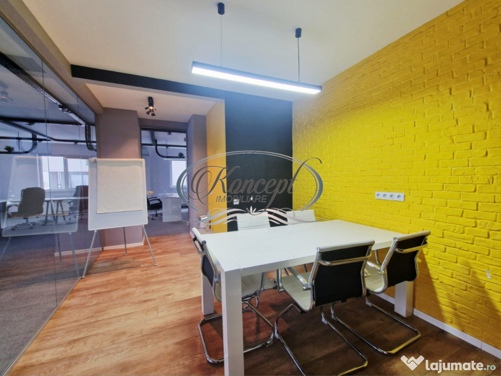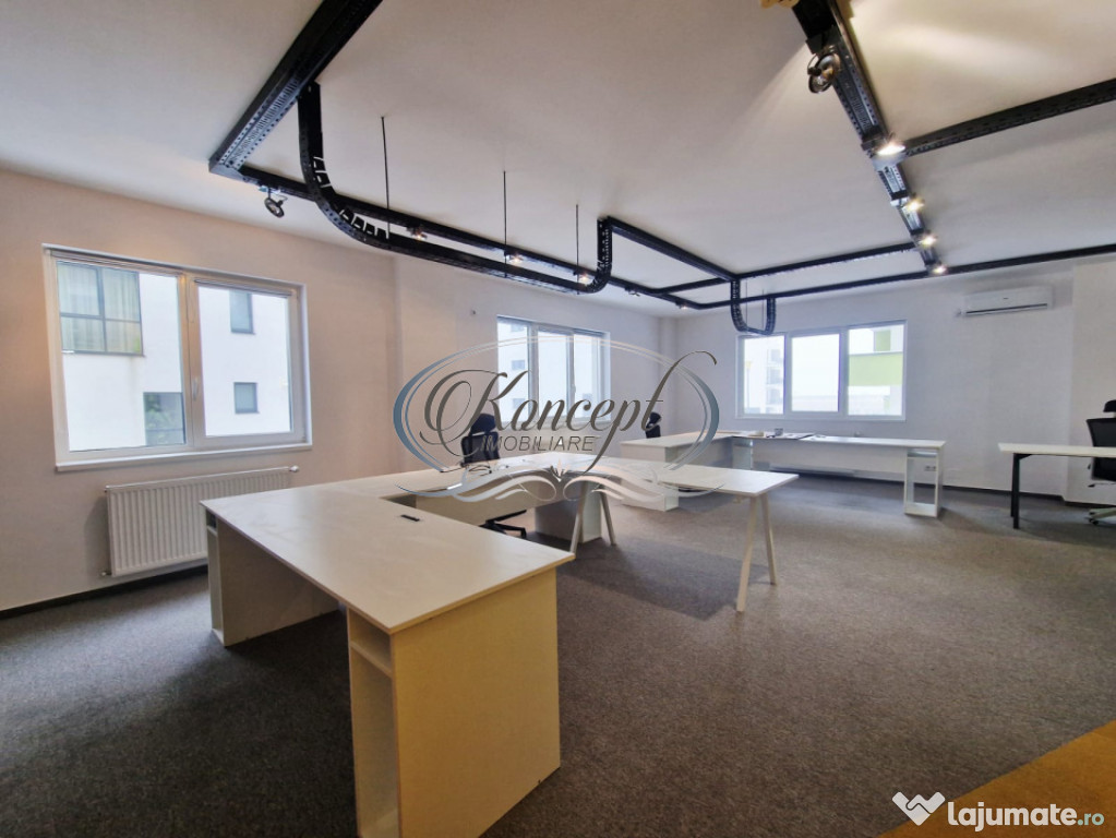 Koncept Imobiliare va ofera spre inchiriere un spatiu de birouri modern, situat in zona Calea Turzii – OMV, una dintre cele mai bine conectate si apreciate zone pentru activitati de business din Cluj-Napoca, cu acces rapid catre centru, cartierele rezidentiale si principalele artere de circulatie. Spatiul are o suprafata utila de 220 mp si este compartimentat eficient pentru activitati de birou, fiind compus din 2 incaperi open-space, sala de meeting, bucatarie cu zona de luat masa si 2 grupuri sanitare. Compartimentarea permite desfasurarea simultana a mai multor activitati, oferind flexibilitate pentru echipe de dimensiuni diferite. Proprietatea beneficiaza de finisaje moderne, spatiul fiind amenajat intr-un stil functional si profesionist. Se inchiriaza complet mobilat, ceea ce permite preluarea imediata si reducerea costurilor initiale de amenajare. Un avantaj important il reprezinta cele 3 locuri de parcare incluse in pret, extrem de valoroase intr-o zona cu trafic intens. Printre punctele forte ale acestui spatiu se numara pozitionarea excelenta pe Calea Turzii, accesibilitatea ridicata, compartimentarea open-space care poate fi adaptata usor diferitelor tipuri de activitati, precum si dotarile care asigura un mediu de lucru confortabil si eficient. Spatiul este recomandat pentru sedii de firma, IT, consultanta, birouri administrative sau activitati corporate, fiind o solutie ideala pentru companiile care isi doresc vizibilitate, acces facil si un spatiu gata de utilizare. Pentru informatii suplimentare, programarea unei vizionari sau pentru a afla oferta noastra completa va stam la dispozitie telefonic, prin e-mail sau la sediul agentiei noastre, pe str. Aviator Badescu, nr. 19, Cluj-Napoca.Id intern: P21109