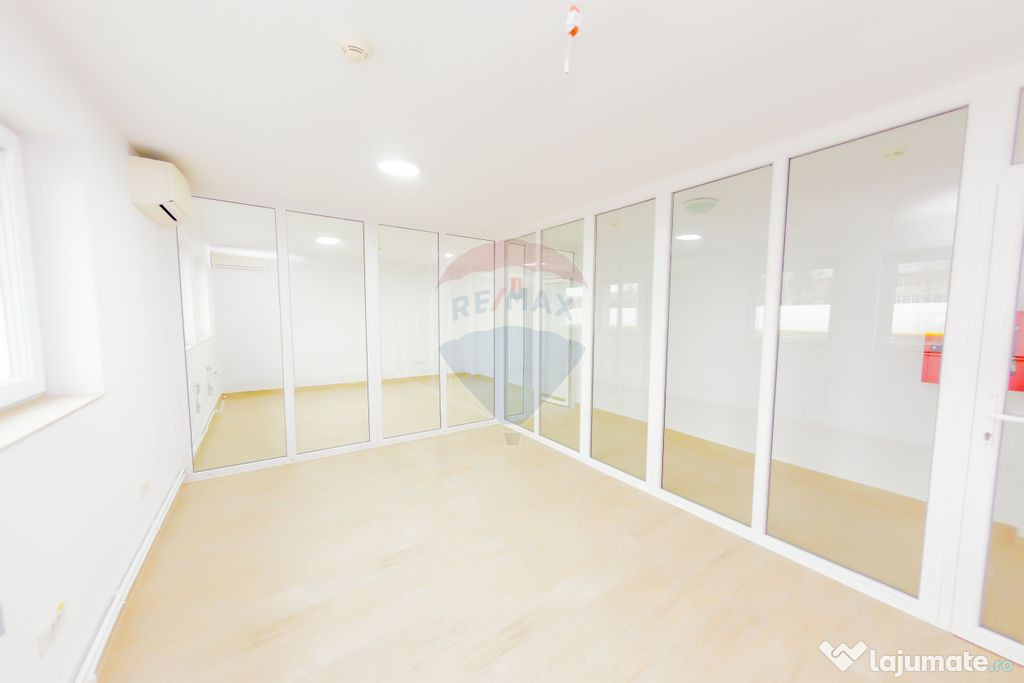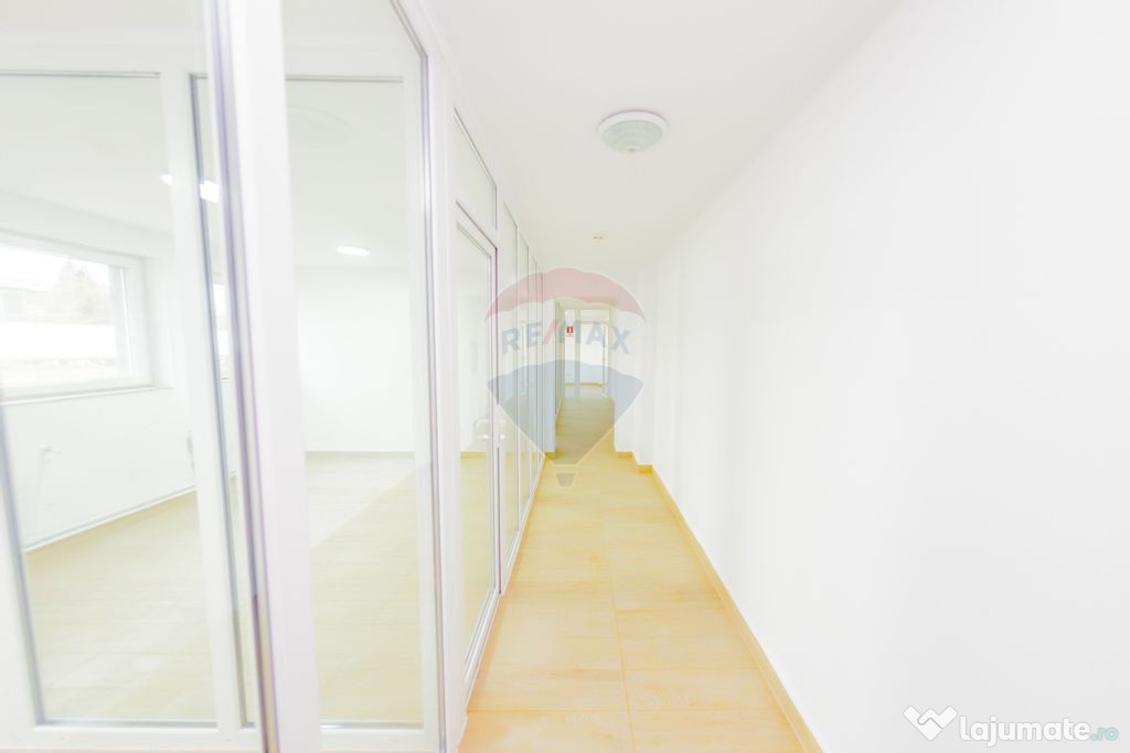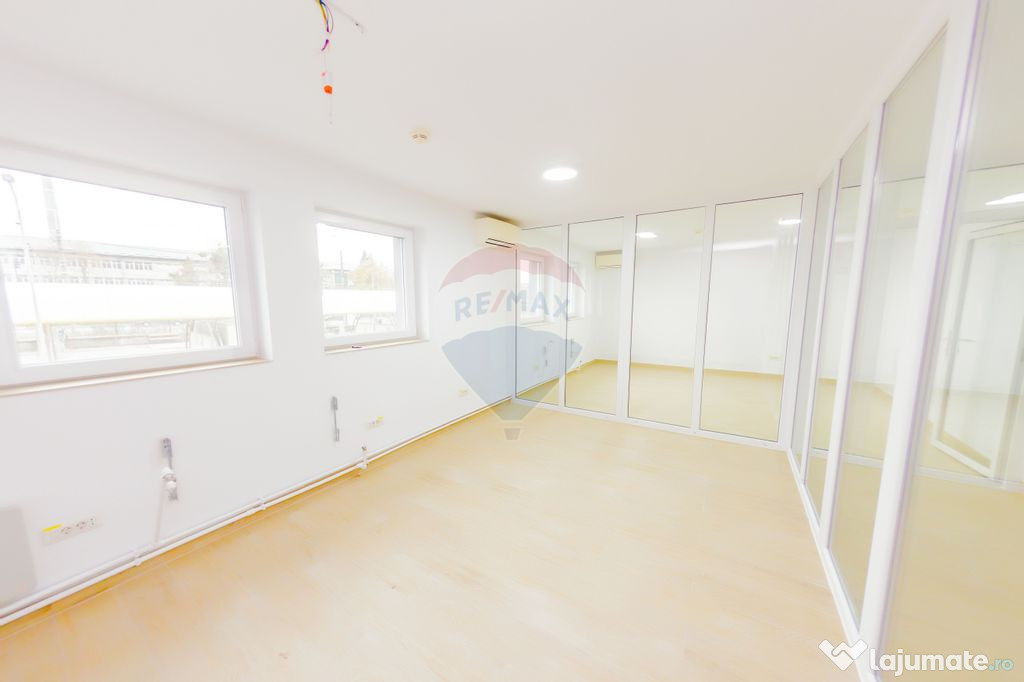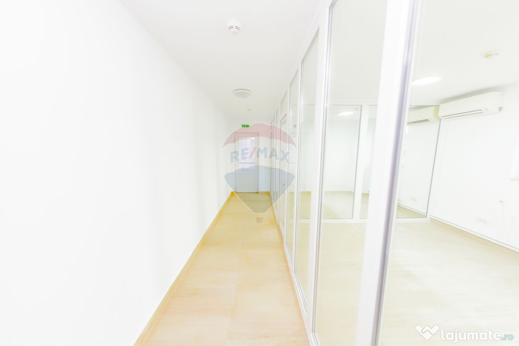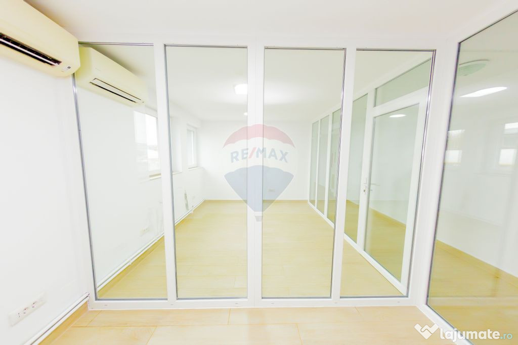 Spatiu de birouri compartimentat, in suprafata de 80 mp, cu grup sanitar, situat in perimetrul centrului comercial de pe strada Lucaciu, cu hala de depozitare in suprafata de 300 mp.