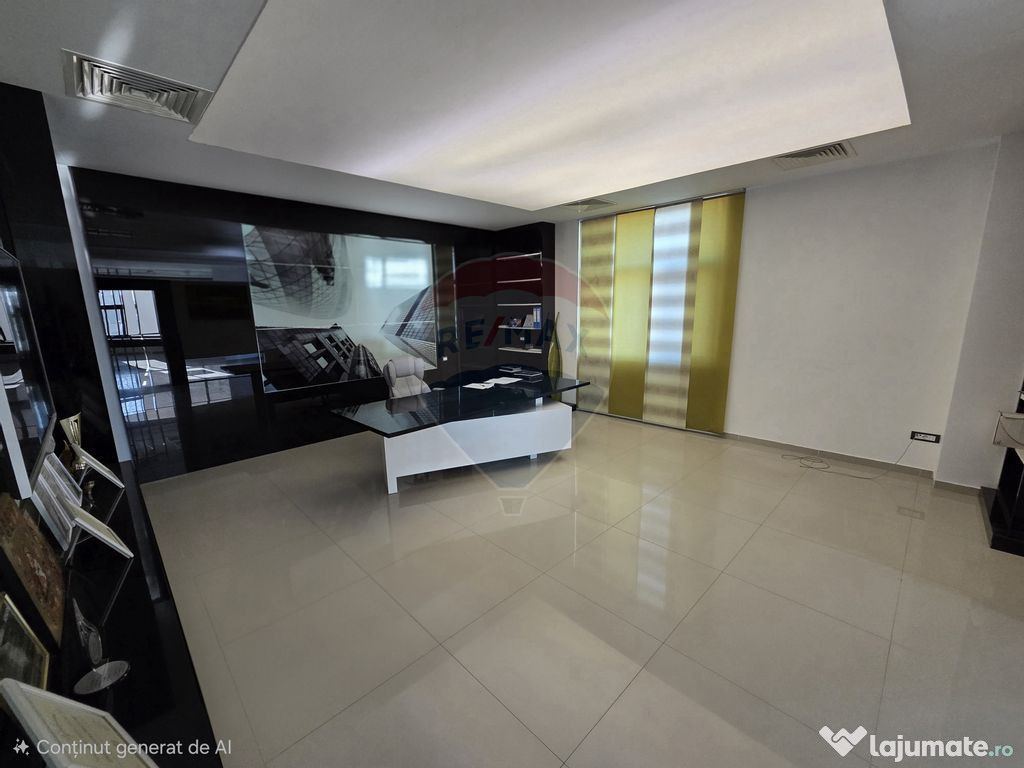 Va propunem la inchiriere spatiu de birouri de aproximpativ 220 mp compartimentat astfel: intrare intr-o camera sptioasa open space, trei birouri, bucatarie, baie si camera tehnica. Hala are 400 mp cu o latime de 10 m si 6-7 m inaltime. Terenul total este de aproximativ 1100 mp.Pentru informatii suplimentare va rugam sa ne contactati.