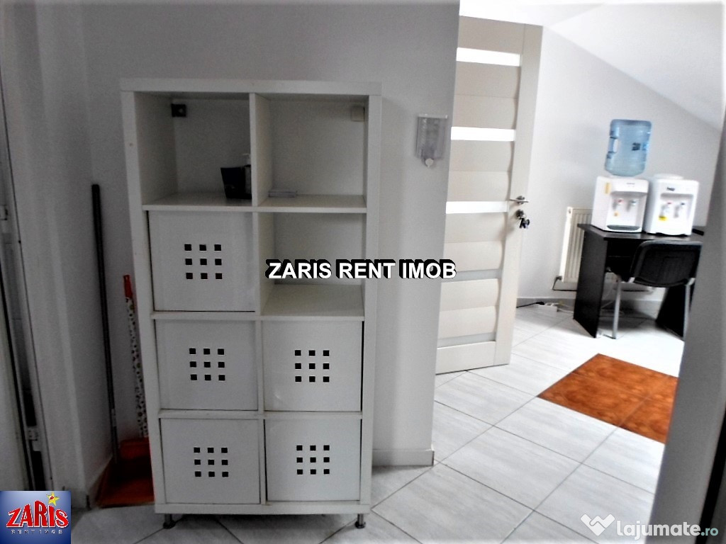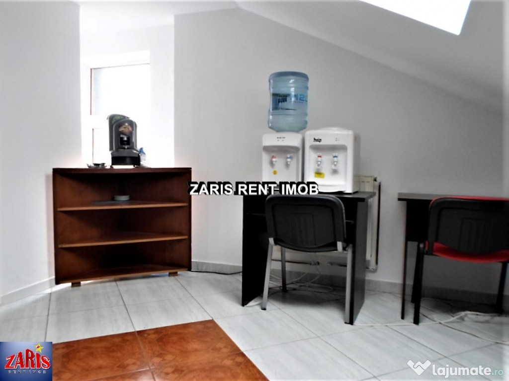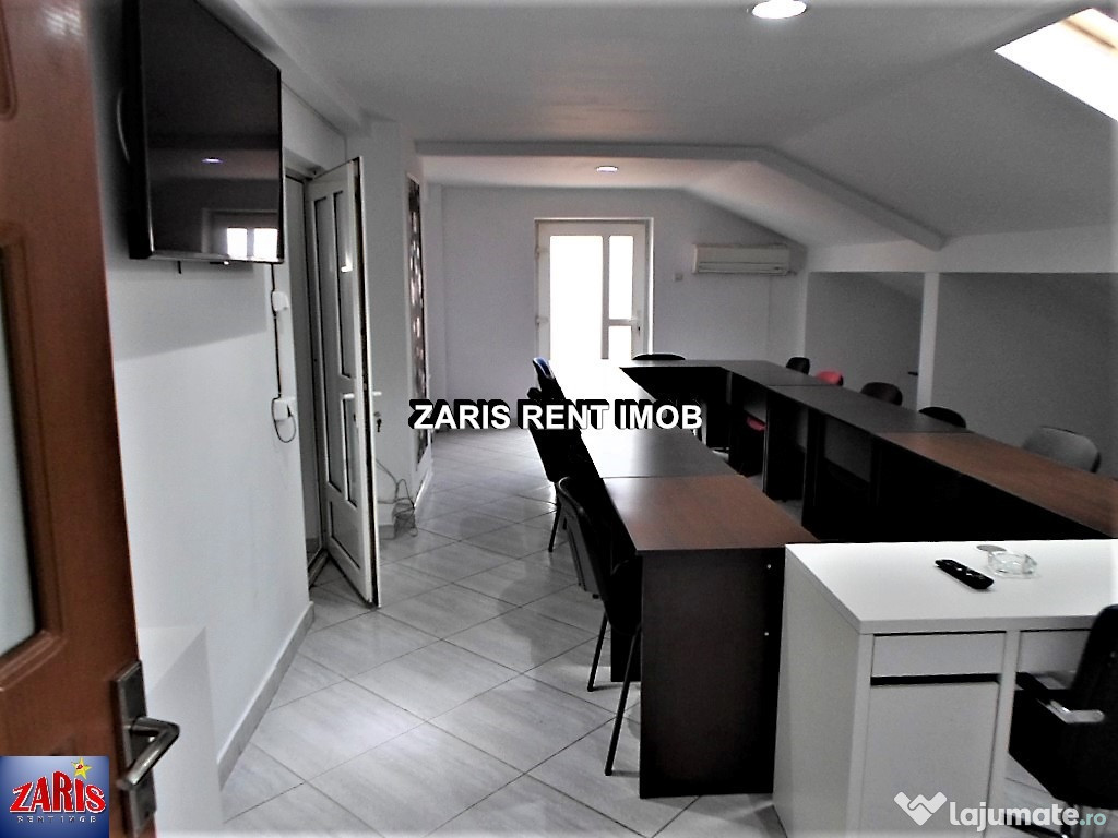 Agentia imobiliara ZARIS RENT IMOB va prezinta spre inchiriere un spatiu pentru birou/cabinet in Ploiesti, zona Gh. Gr. Cantacuzino, Sc 90 mp, Su 80mp, aflat la mansarda intr-o cladire cu regim de inaltime S+P+2E+M, construita in 2008, renovata in 2019, parcare perimetrala. Cladirea este amplasata pe o artera intens circulata, cu acces usor din centrul orasului si se preteaza pentru birouri, sediu firma, centru SPA, cabinet nutritie etc.Finisaje si dotari: spatiu compartimentat in 3 camere, pereti din rigips, existand posibilitatea decuparii in vederea obtinerii unui open space, partial (optional) mobilat, tamplarie PVC cu geam termopan, jaluzele verticale, pereti zugraviti cu vopsea lavabila, pardoseala din gresie, iluminat cu lampi neon; aer conditionat; incalzire prin centrala termica proprie cu calorifere din aluminiu, separatie apa, electricitate (220V si 380V), grup sanitar, faianta, usi interior MDF, terasa in exterior. Cladirea este anvelopata.