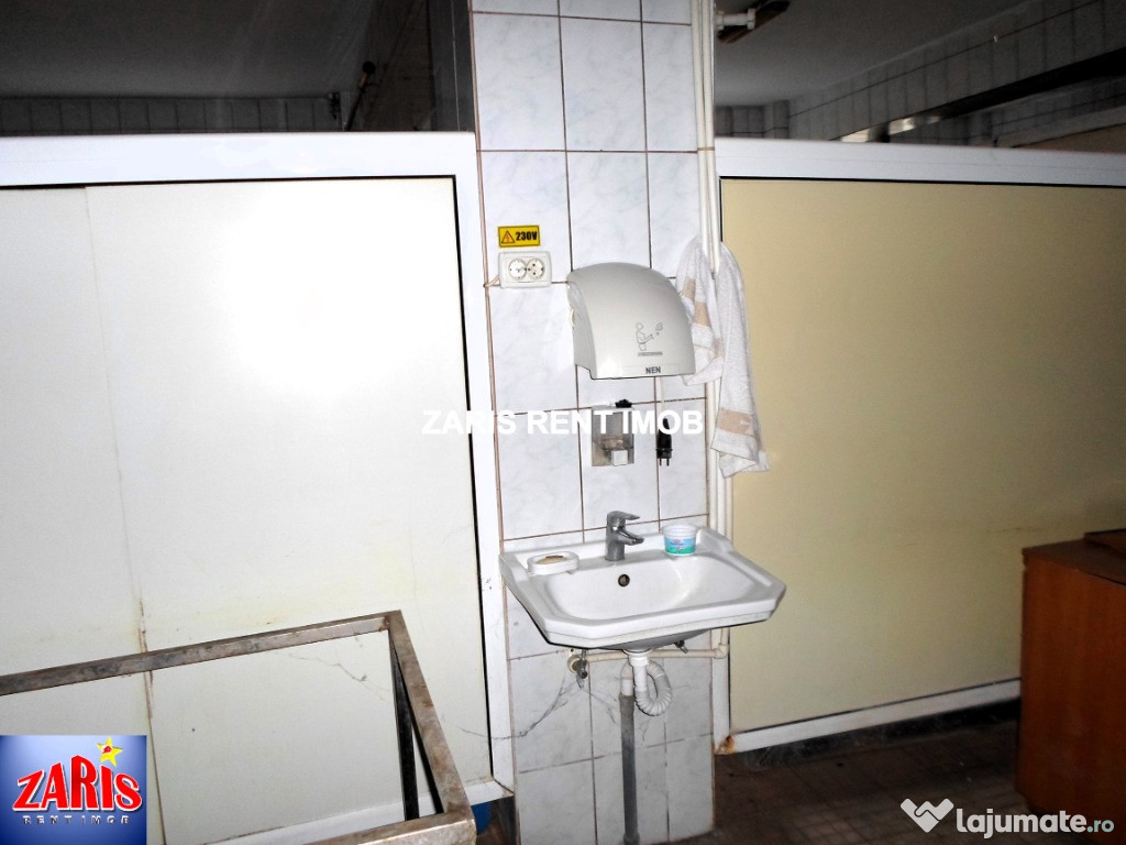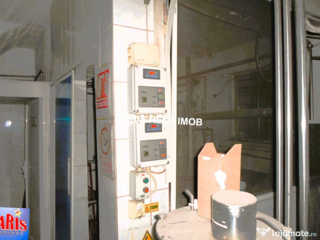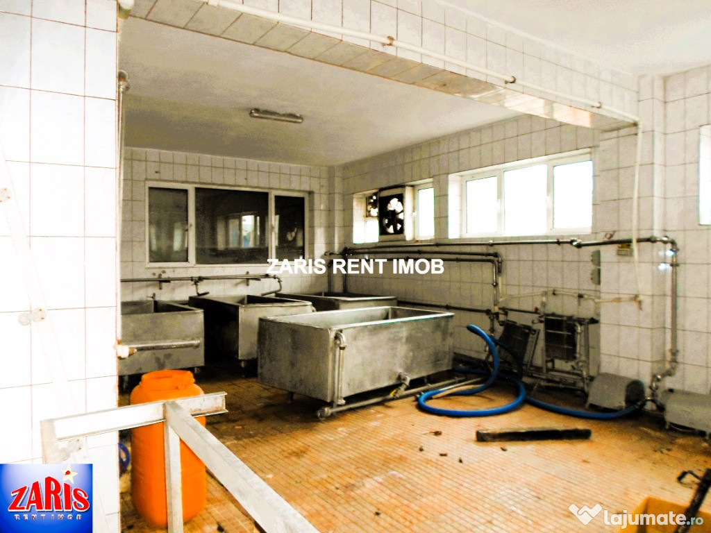 Agentia imobiliara ZARIS RENT IMOB va propune spre inchiriere parterul unui imobil ideal pentru mica industrie, laborator, atelier, productie alimentara etc. avand suprafata utila de aproximativ 300 mp; utilitati: apa, canalizare, electricitate 220V si 380V, gaze. Doua cai de acces. Pozele sunt de prezentare, utilajele nu fac obiectul acestei oferte de inchiriere. Destinatie anterioara: fabrica produse lactate.Dotari: tamplarie PVC cu geamuri termopan, gresie, faianta.
