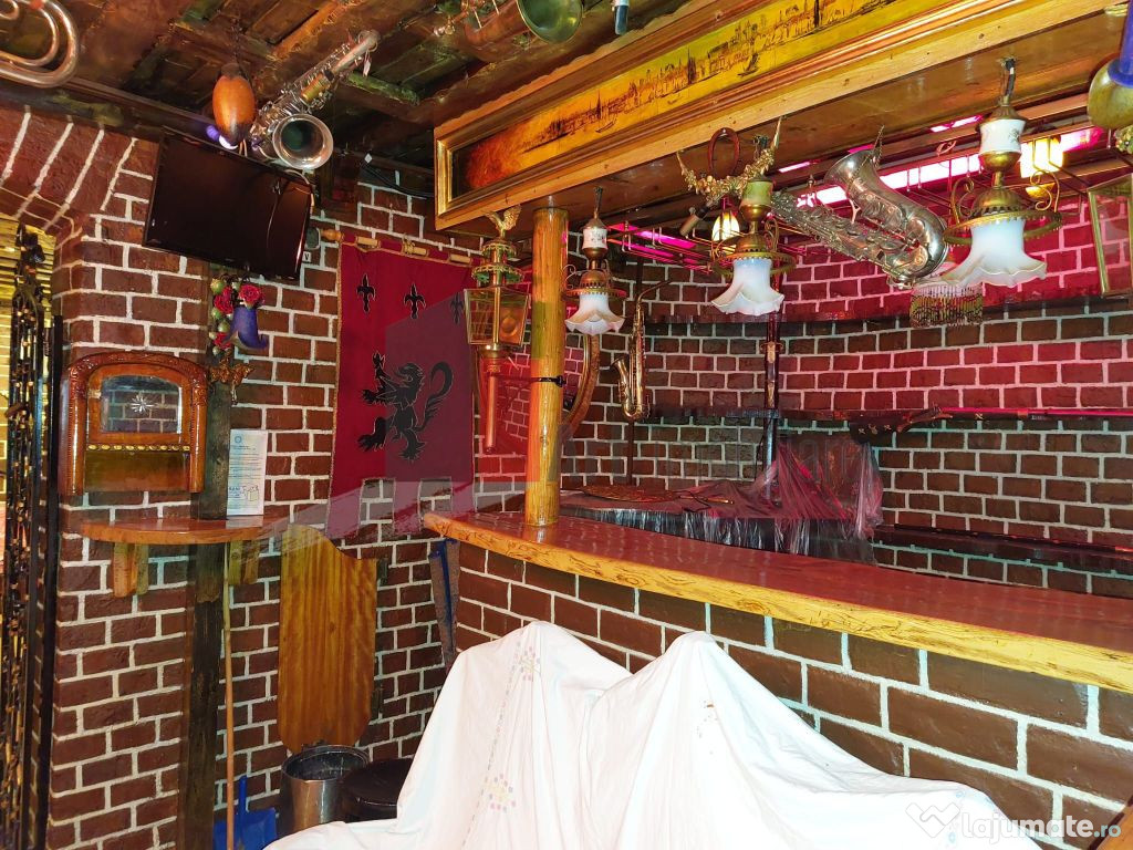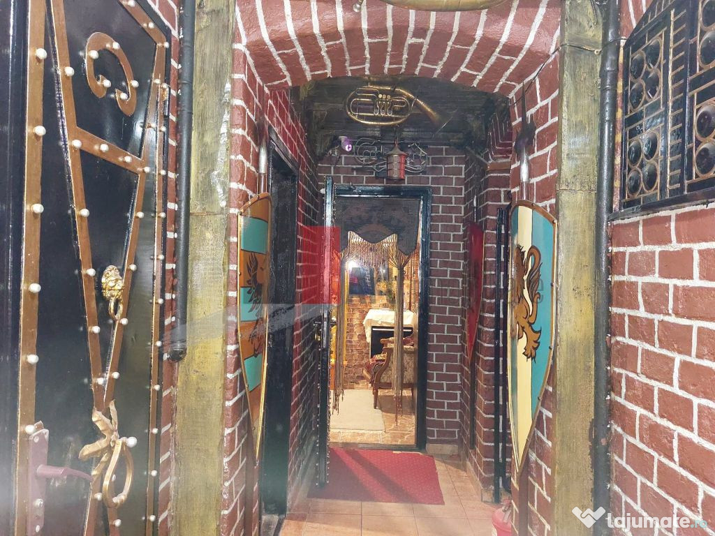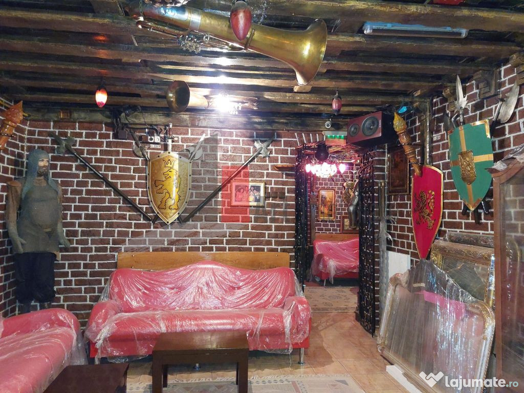 De cand intram in el, simtim un aer de intimitate, de originalitate, individualitate, acestea datorandu-se amenajarii si decorarii acestuia, cu un aer MEDIEVAL, ceea ce il face sa te cucereasca din prima clipa. In trecut insusi proprietarul desfasurt o activitate aici, asa putandu-se explica INVESTITIILE MASIVE de aici, respectiv reconditionari complete ale caramizii originale, care a fost tratata si lacuita profesional, usilor MASIVE din FIER FORJAT, candelabre, corpuri de iluminat, elementelor de decor care parca te trimit undeva in timp, in LUMEA MEDIEVALA. Proprietarul spune de altfel ca nu isi mai recupereaza nici pe departe investitiile facute aici, respectiv de cateva ZECI DE MII DE EURO si o poate dovedi cu ce gasim acolo. Tind sa ii dau dreptate, eu insumi fiind cucerit de ambianta spatiului, valoarea conferita de obiectele vechi din interior, care sunt FOARTE SCUMPE si atat de bine aranjate intr-un decor cum spuneam mai devreme MEDIEVAL, CU O MARE INCARCATURA ISTORICA. Lucrurile astea il fac atragator atat amatorilor de gen, care apreciaza sarmul unei asemenea decorari, ceea ce inseamna ca poate fi folosit pentru uzul propriu, dar de asemenea si achizitionat pentru INVESTITIE. La capitolul facilitati, putem aminti despre: