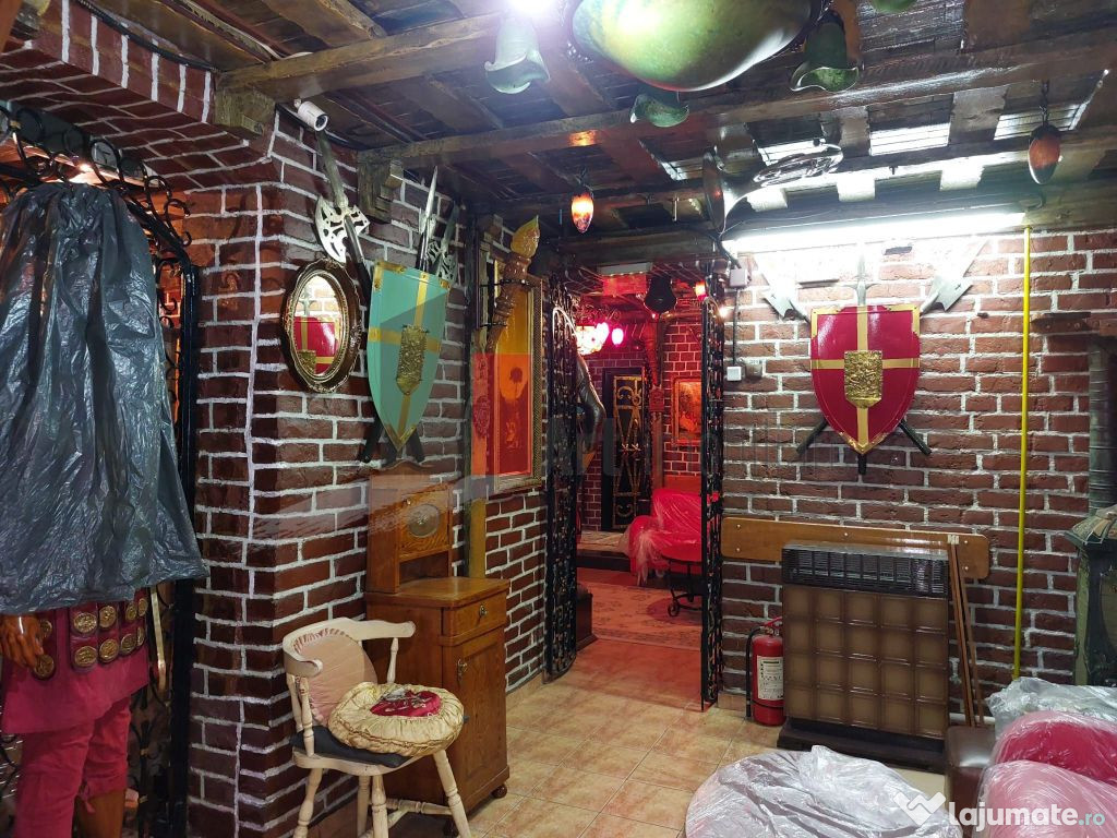 Spatiul "MEZEPOKA" SE VINDE CUM ESTE PREZENTAT IN FOTOGRAFII, CU TOATE OBIECTELE DE DECOR SI LUCRURILE INTERIOR(STATUETE, ARMURI, ARME DIVERSE, CANAPELE, FOTOLII, INSTRUMENTE MUZICALE etc. ) care toate sunt valoroase si te asteapta sa iti prezinte POVESTEA lui, sa te trimita in LUMEA VECHE MEDIEVALA, sa te cucereasca.