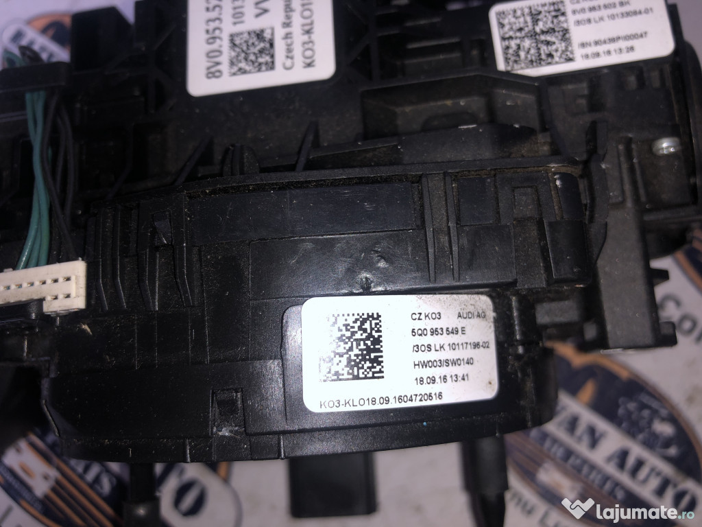 Spira volan + manete Audi A3 8V 2016. Cod(uri): 8V0953521JD, 5Q0953549E. Piesele comercializate sunt originale, provenite din dezmembrari. Dispunem de o gama larga de piese multimarca. Piesele sunt verificate inainte de a fi puse spre vanzare. In caz de neconformitate piesa se poate returna. Va rugam sa verificati disponibilitatea pieselor telefonic. Trimitem in tara prin curier.Marcă: Audi