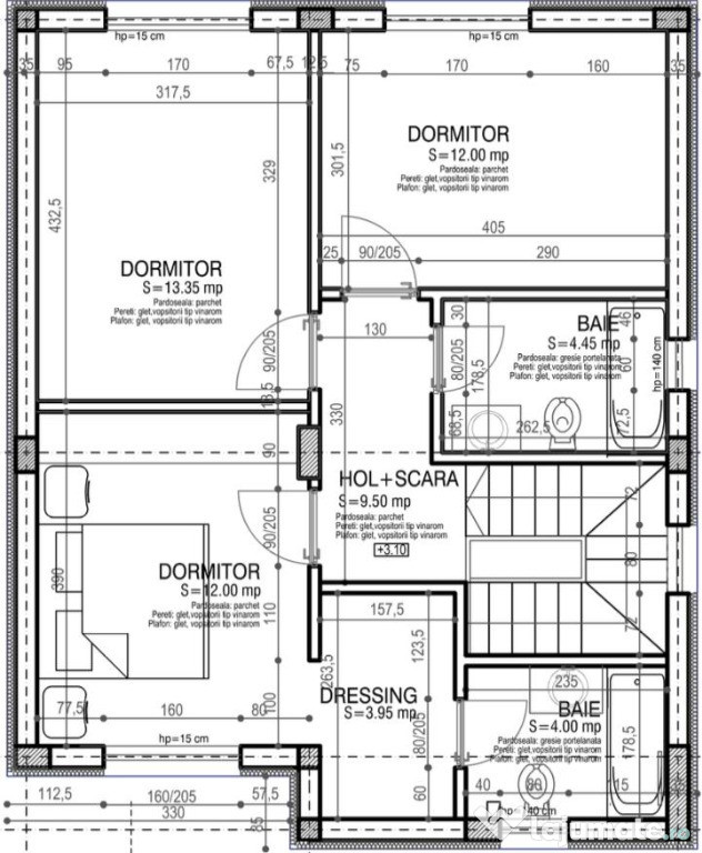 • Dormitor matrimonial – 12 mp cu dressing de 4 mp și baie proprie de 4 mp