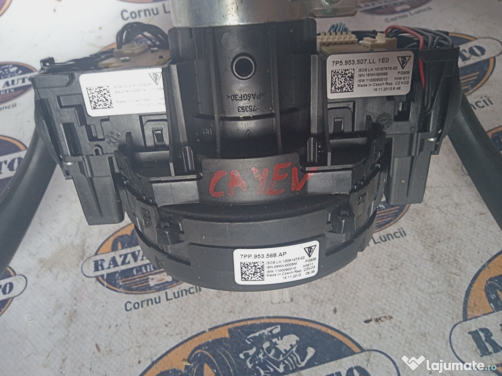 Spira volan + manete Porsche Cayenne 2013. Cod(uri): 7PP953568AP, 7P5953507LL. Piesele comercializate sunt originale, provenite din dezmembrari. Dispunem de o gama larga de piese multimarca. Piesele sunt verificate inainte de a fi puse spre vanzare. In caz de neconformitate piesa se poate returna. Va rugam sa verificati disponibilitatea pieselor telefonic. Trimitem in tara prin curier.Marcă: Porsche