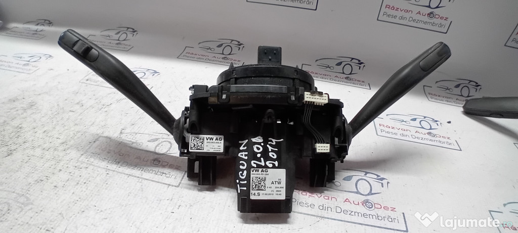 Spira volan + manete Volkswagen Tiguan 2014. Cod(uri): 5K0953521BM, 5K0953502K. Piesele comercializate sunt originale, provenite din dezmembrari. Dispunem de o gama larga de piese multimarca. Piesele sunt verificate inainte de a fi puse spre vanzare. In caz de neconformitate piesa se poate returna. Va rugam sa verificati disponibilitatea pieselor telefonic. Trimitem in tara prin curier.Marcă: Volkswagen